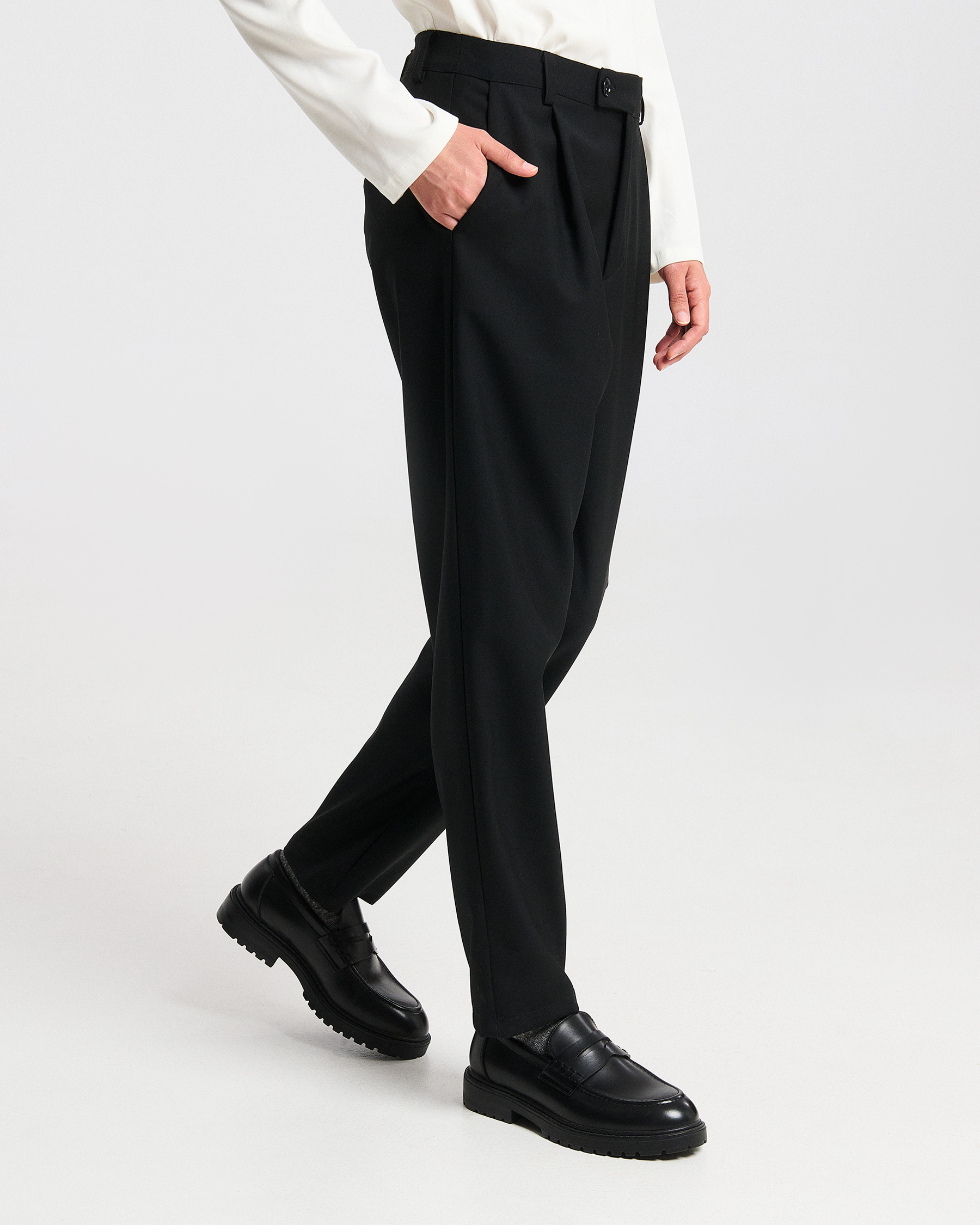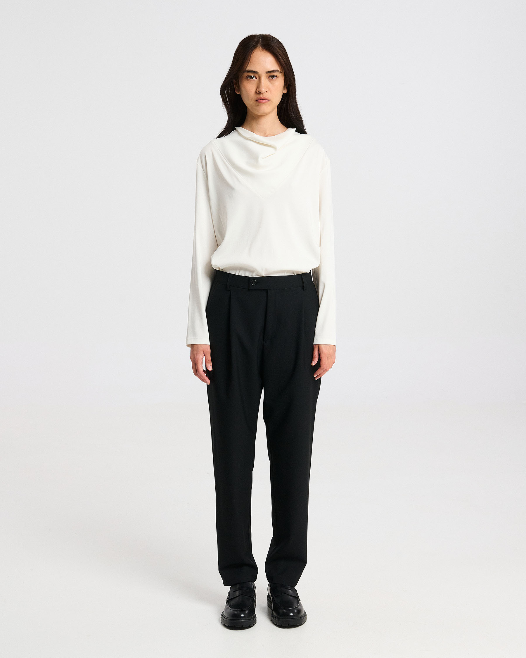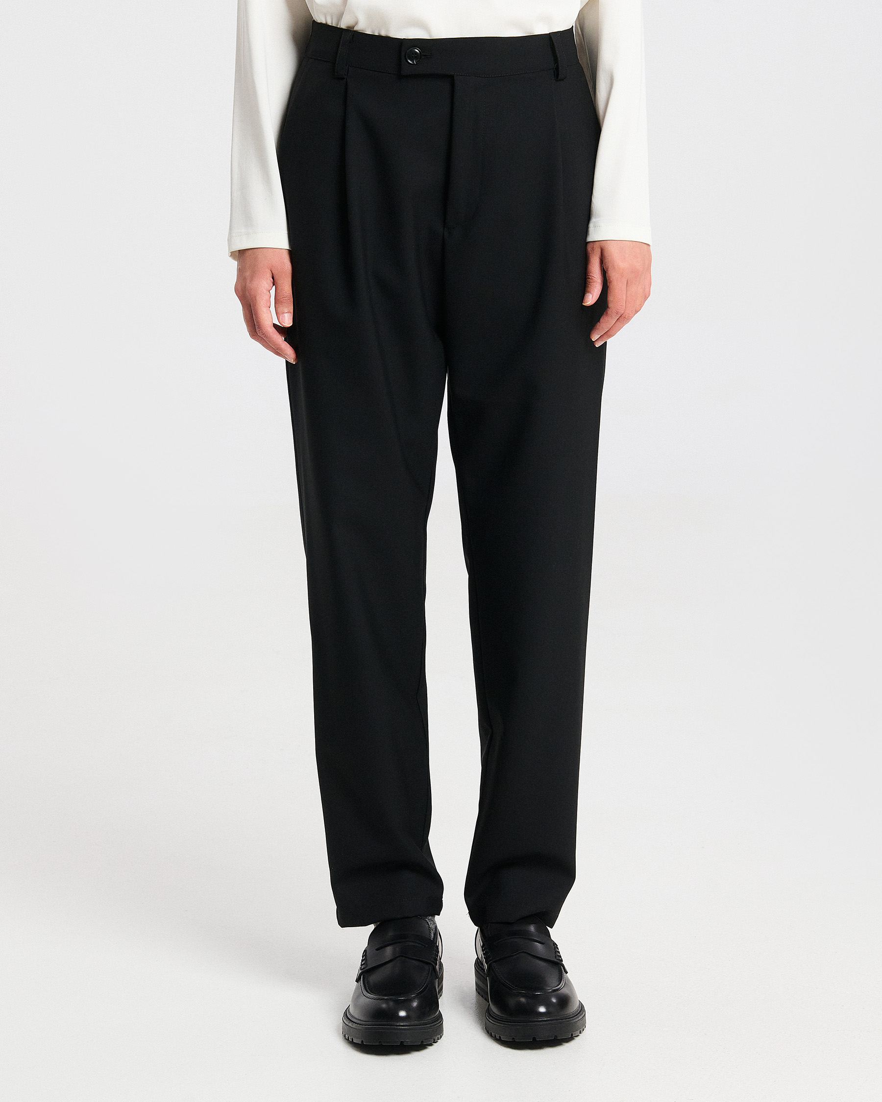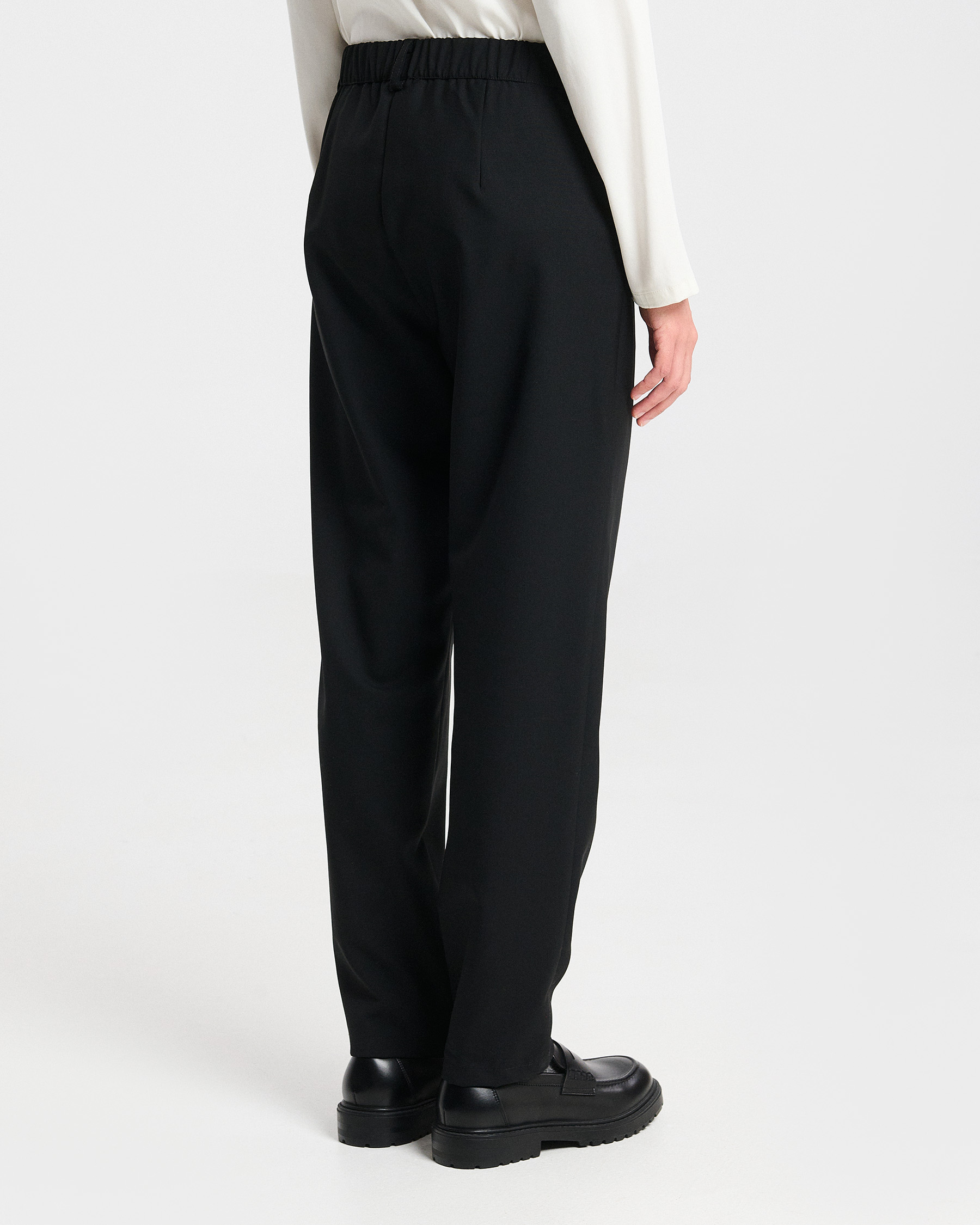 Φαρδύ μάλλινο παντελόνι με λάστιχο πίσω, πιέτες και τσέπες. Κατασκευάζεται στην Ελλάδα.