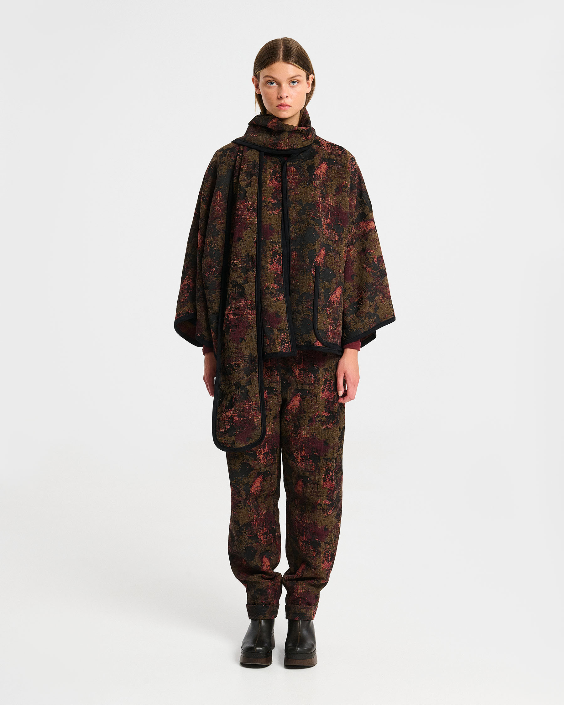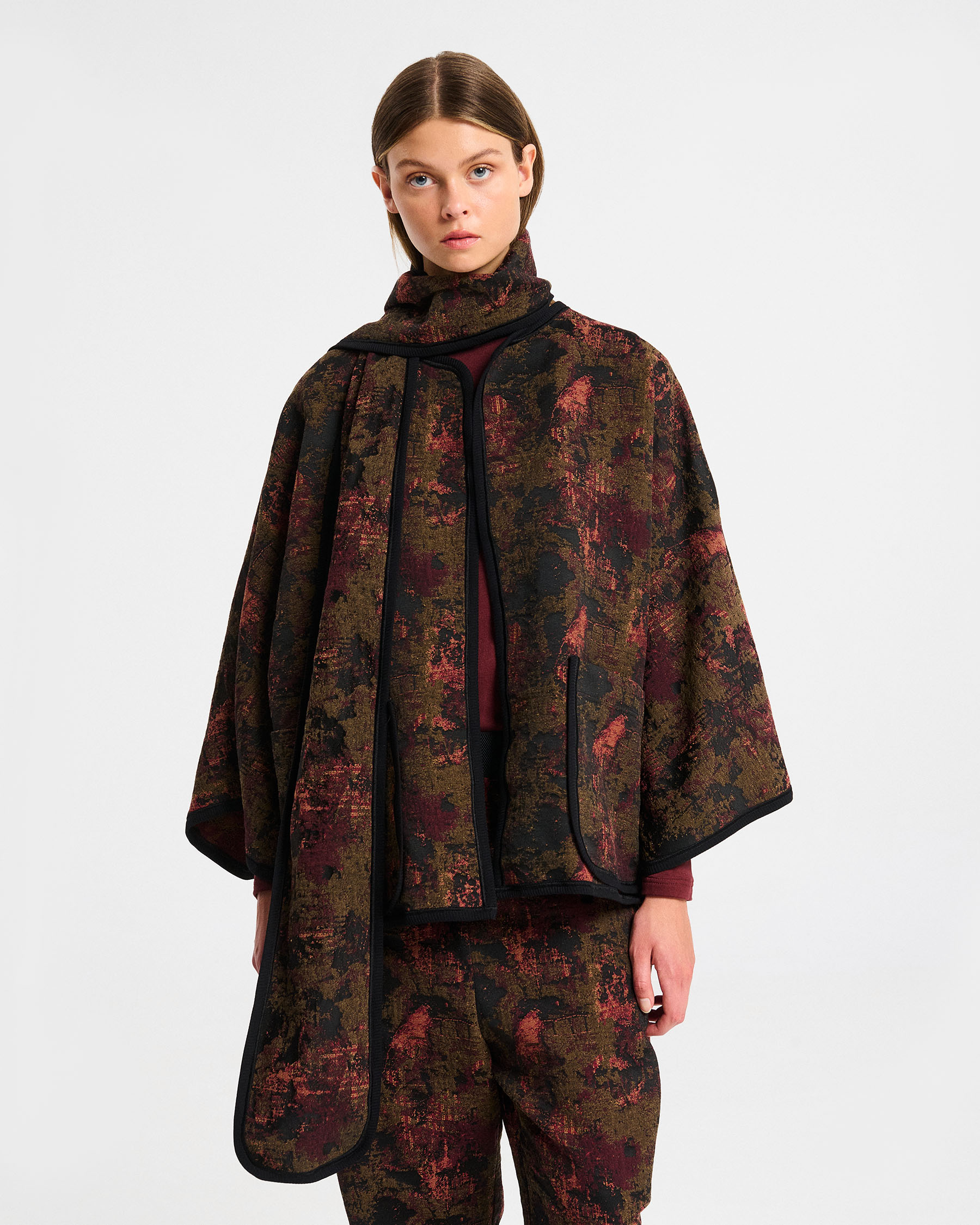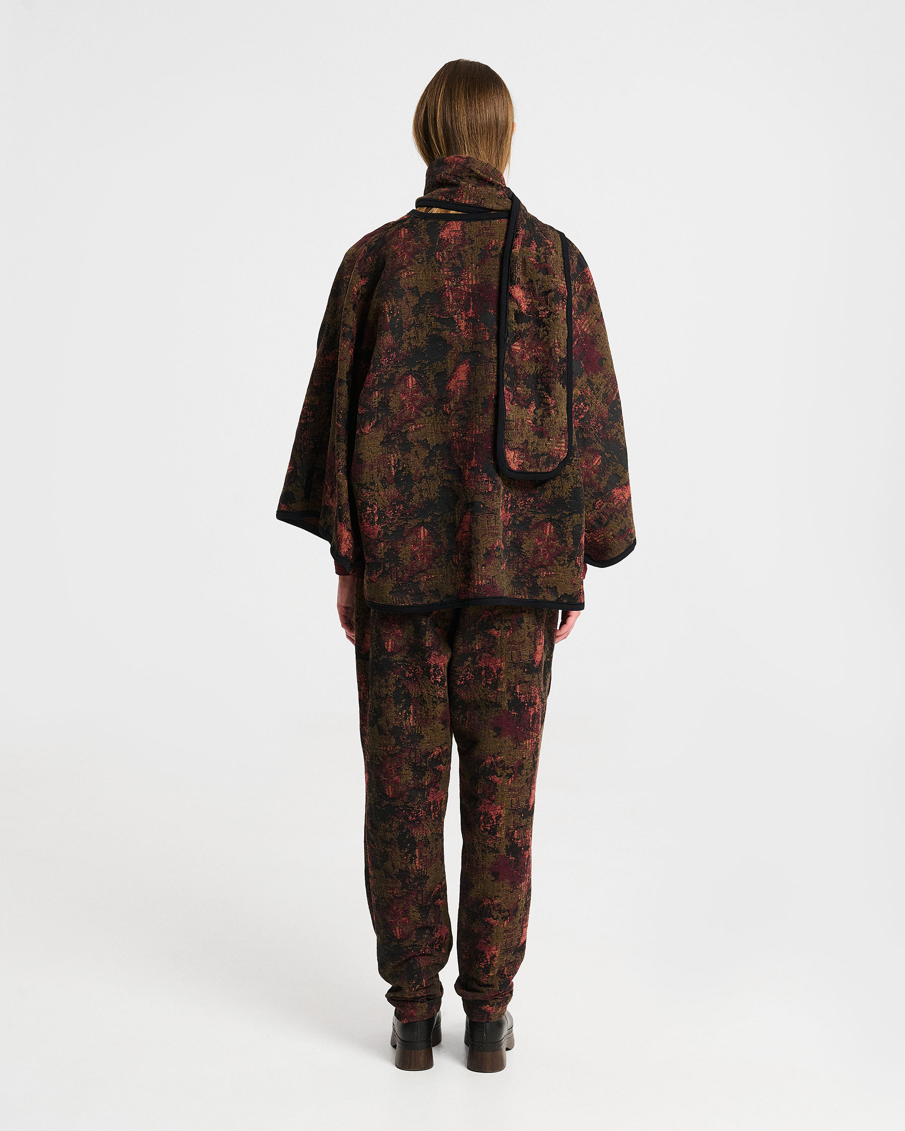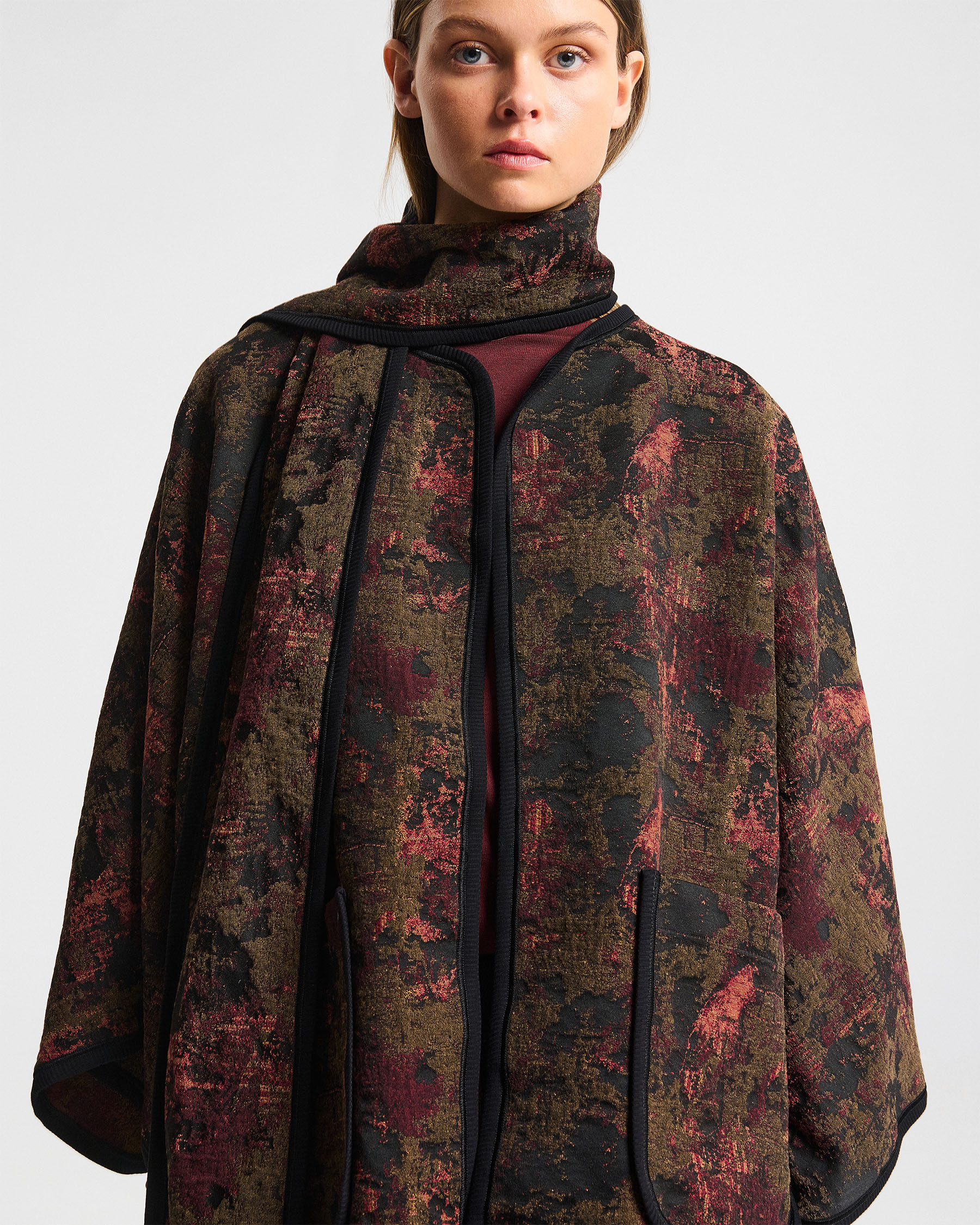 Φαρδιά μπροκάρ ζακέτα με κασκόλ και 3/4 japonais μανίκια. Κατασκευάζεται στην Ελλάδα.