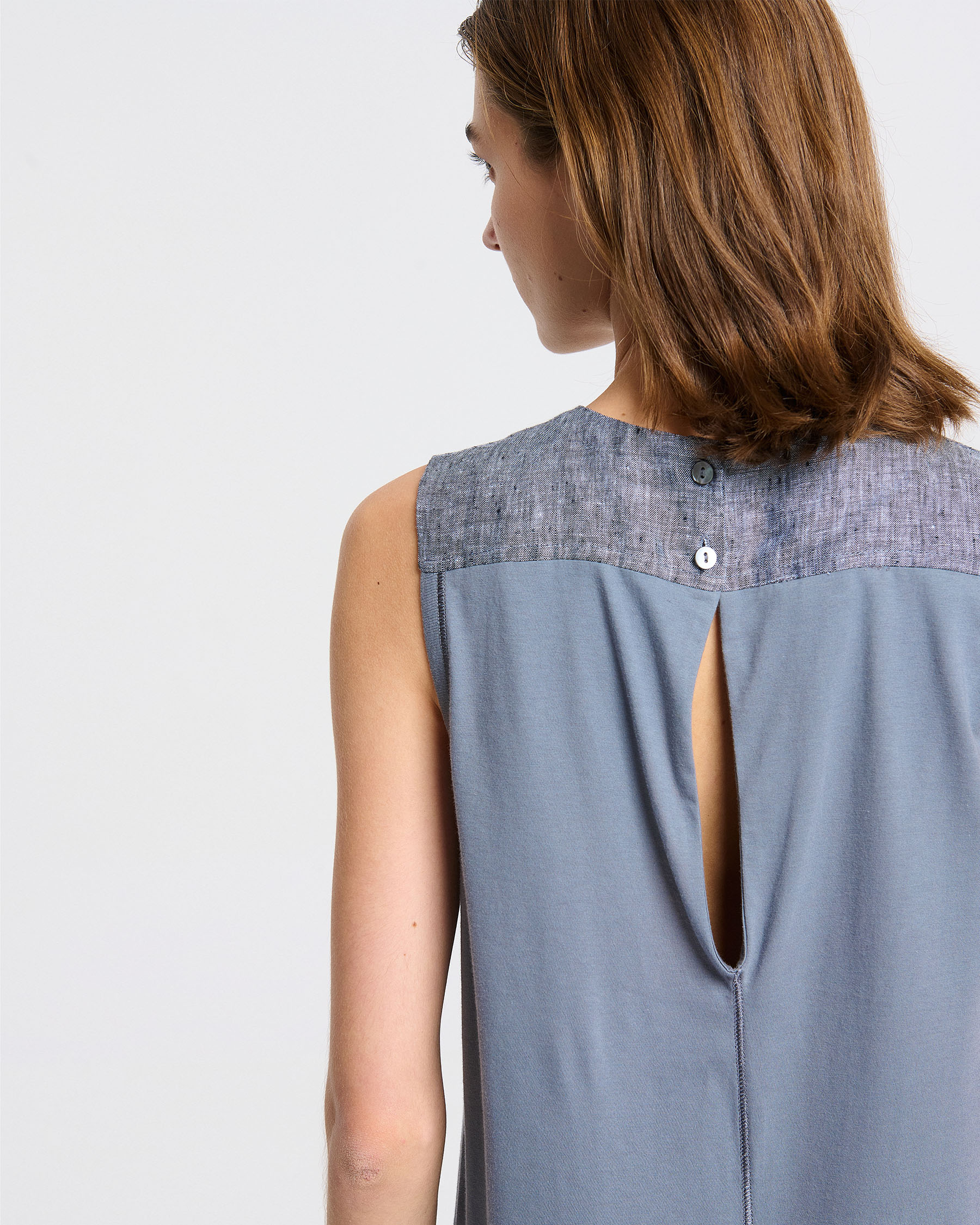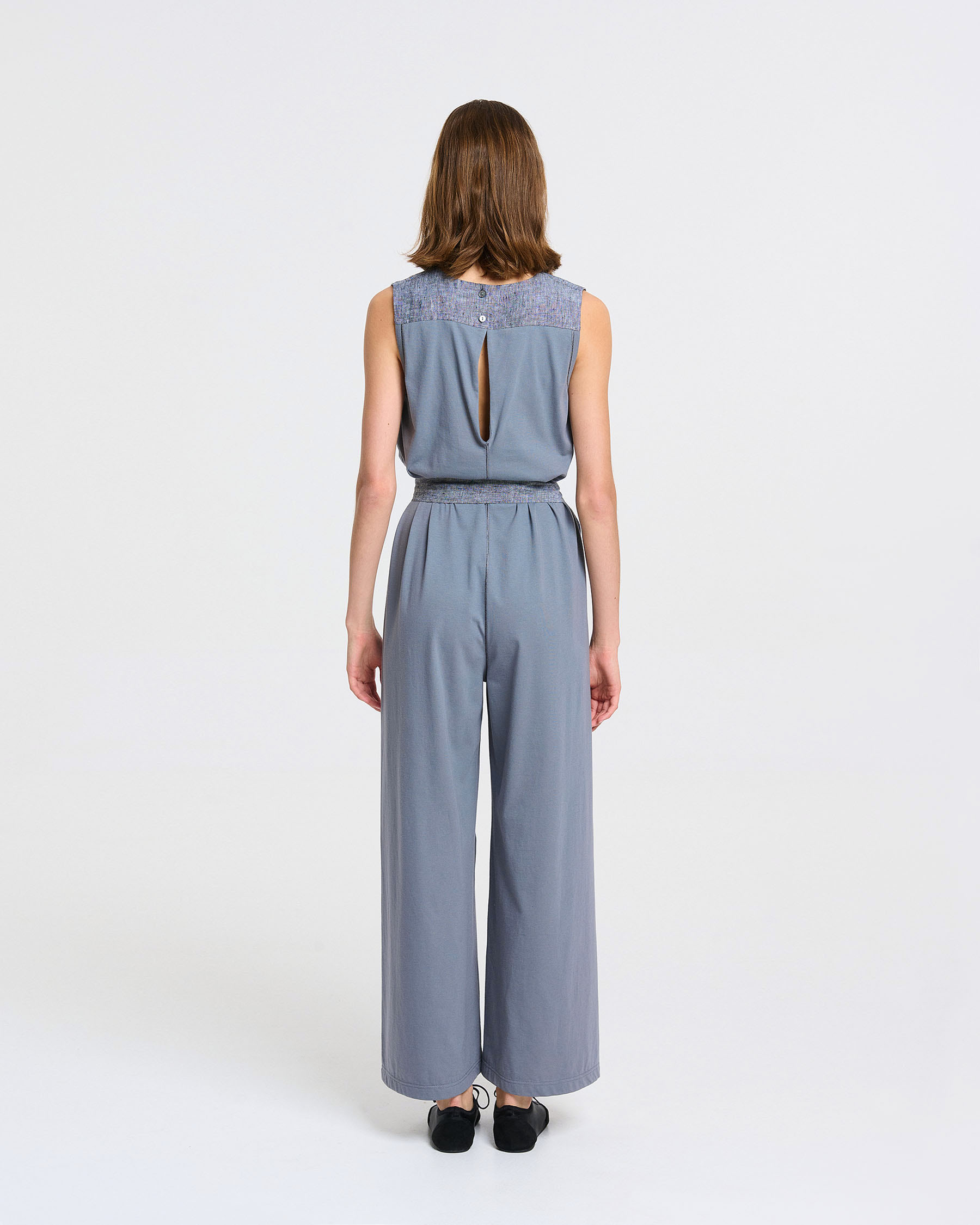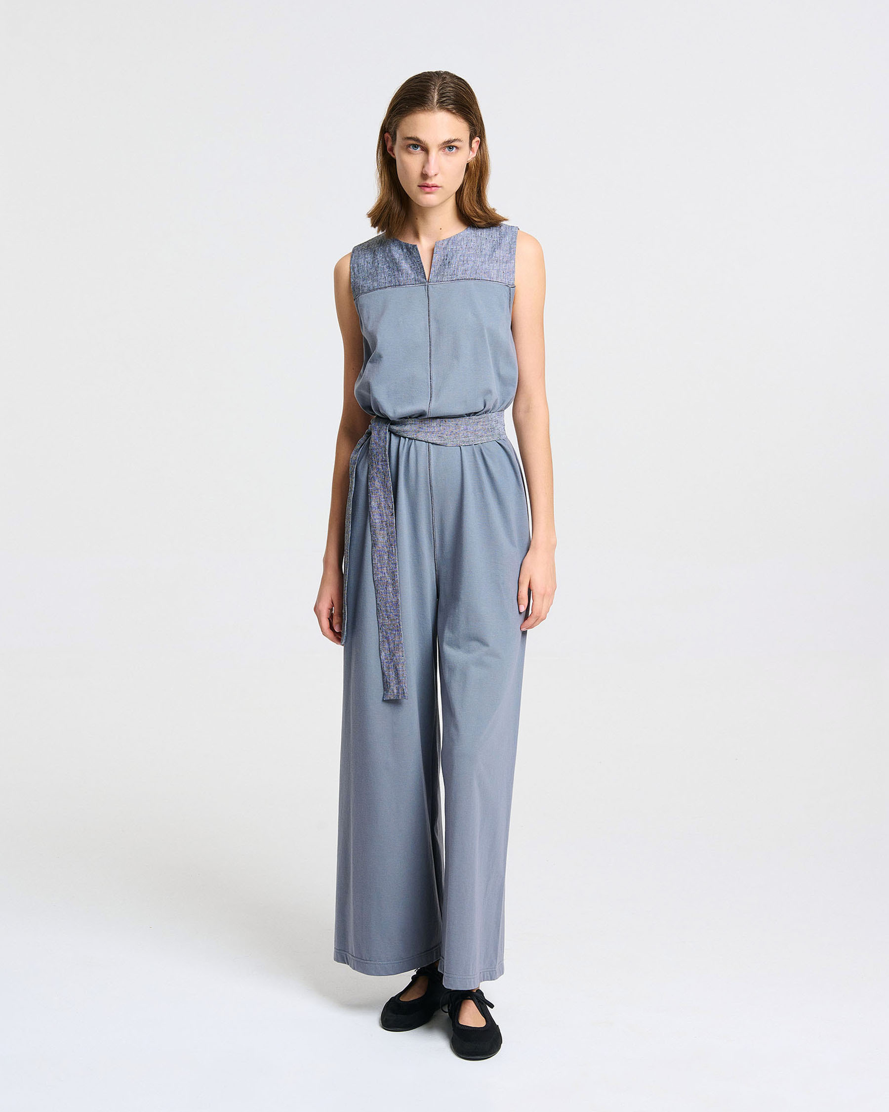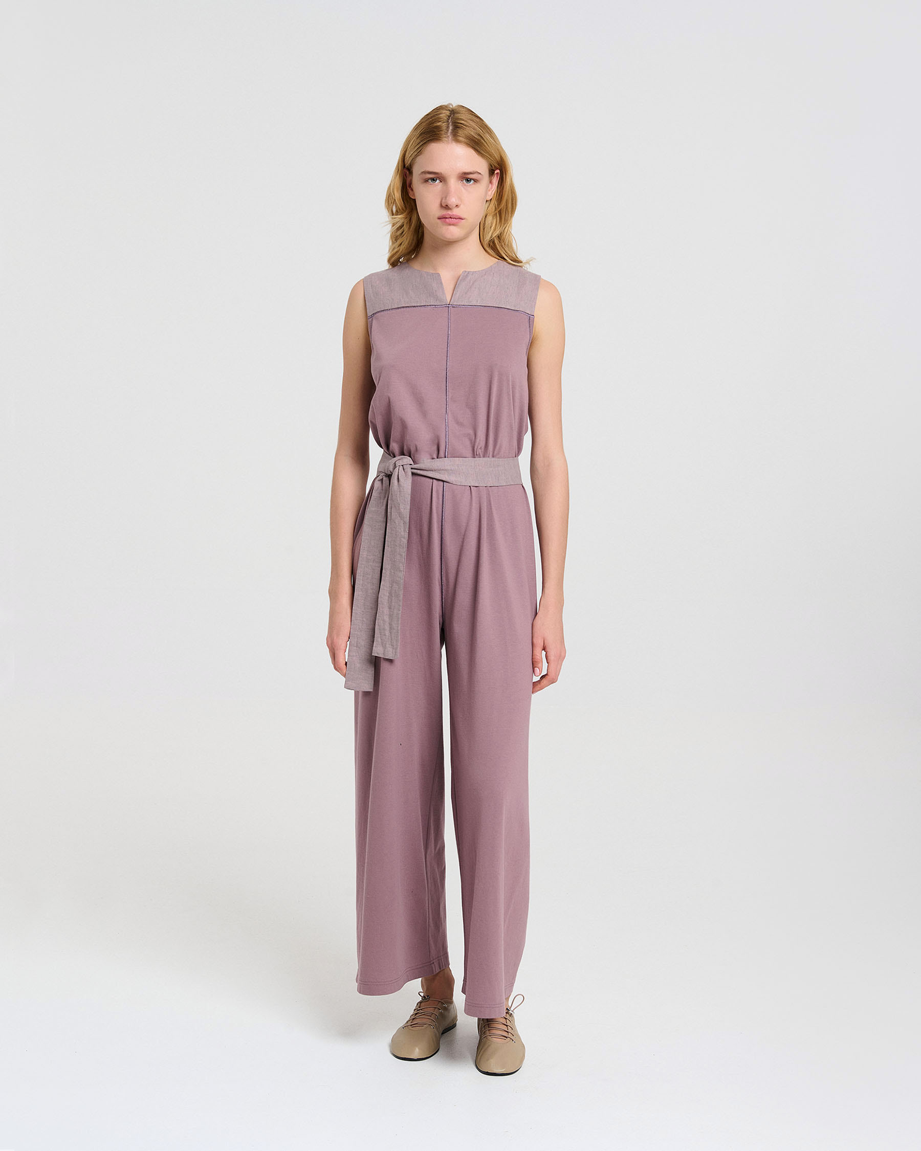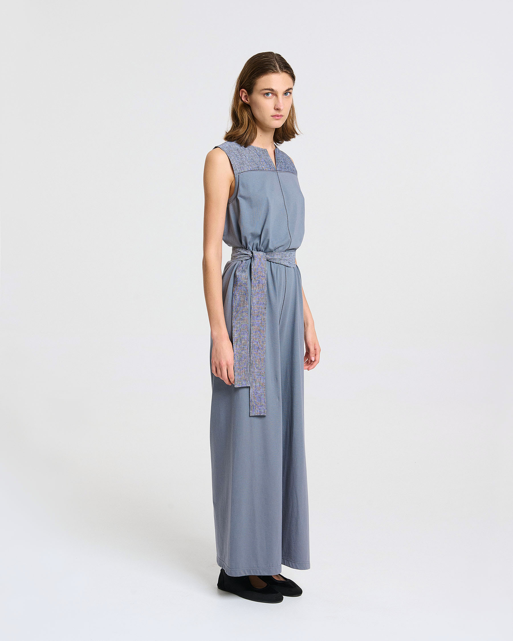Βαμβακερή φαρδιά αμάνικη ολόσωμη φόρμα με λινό ωμίτη και ζώνη. Κατασκευάζεται στην Ελλάδα.