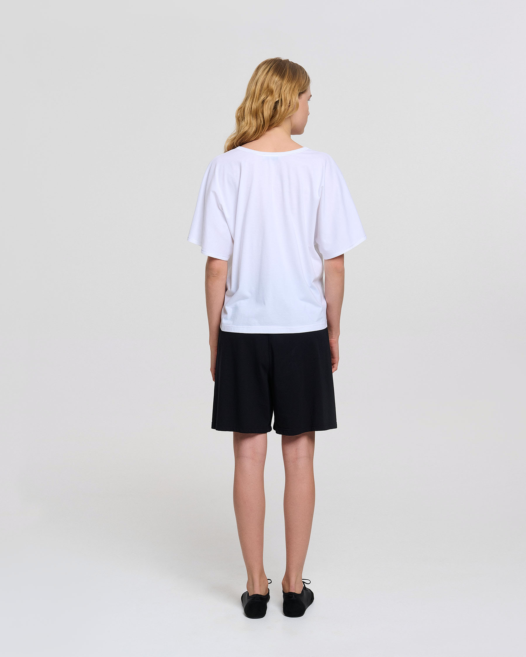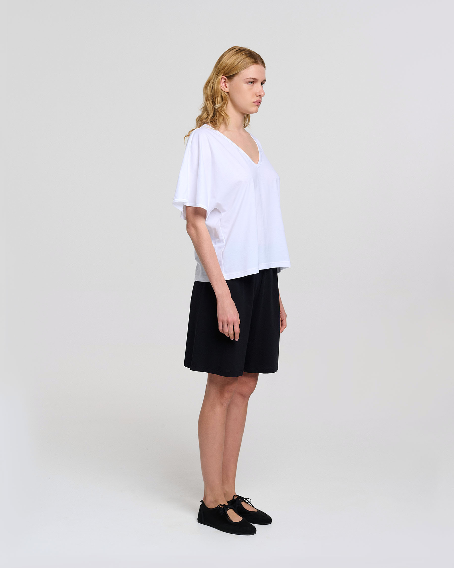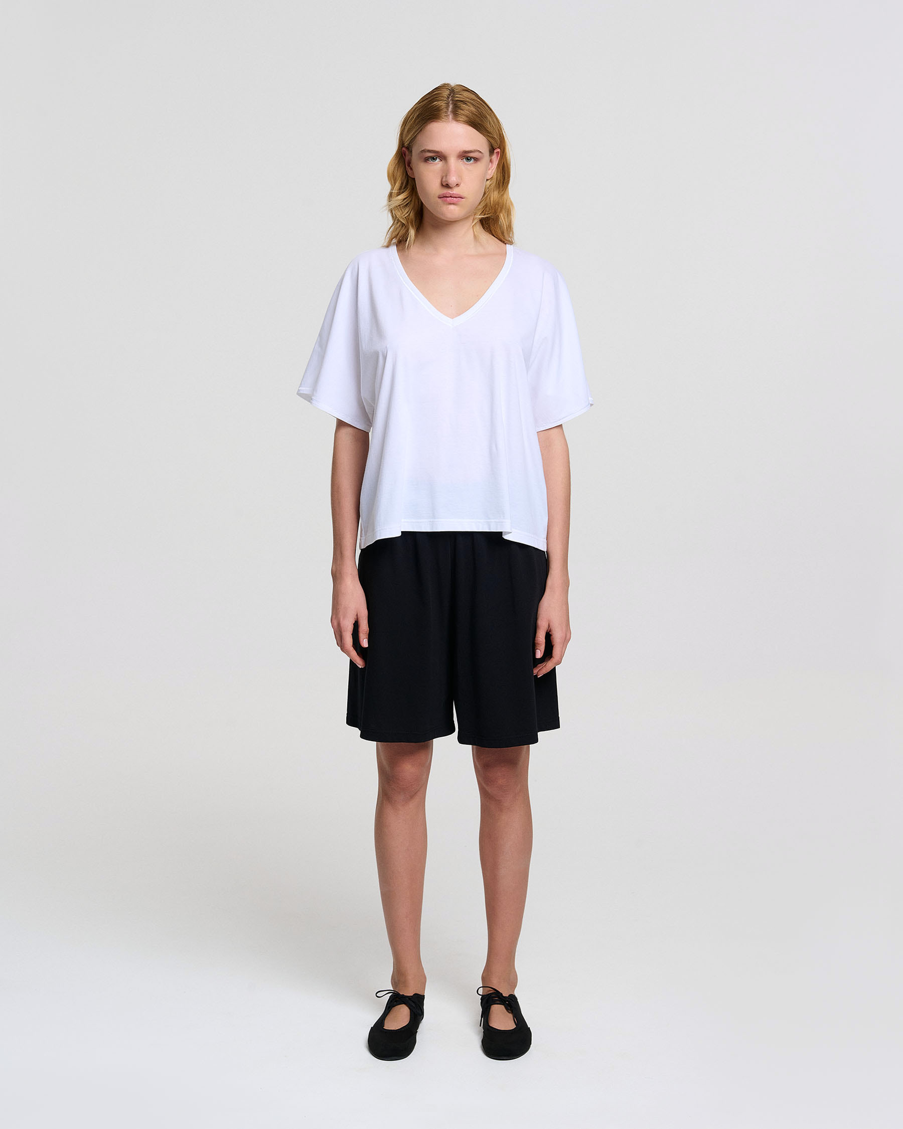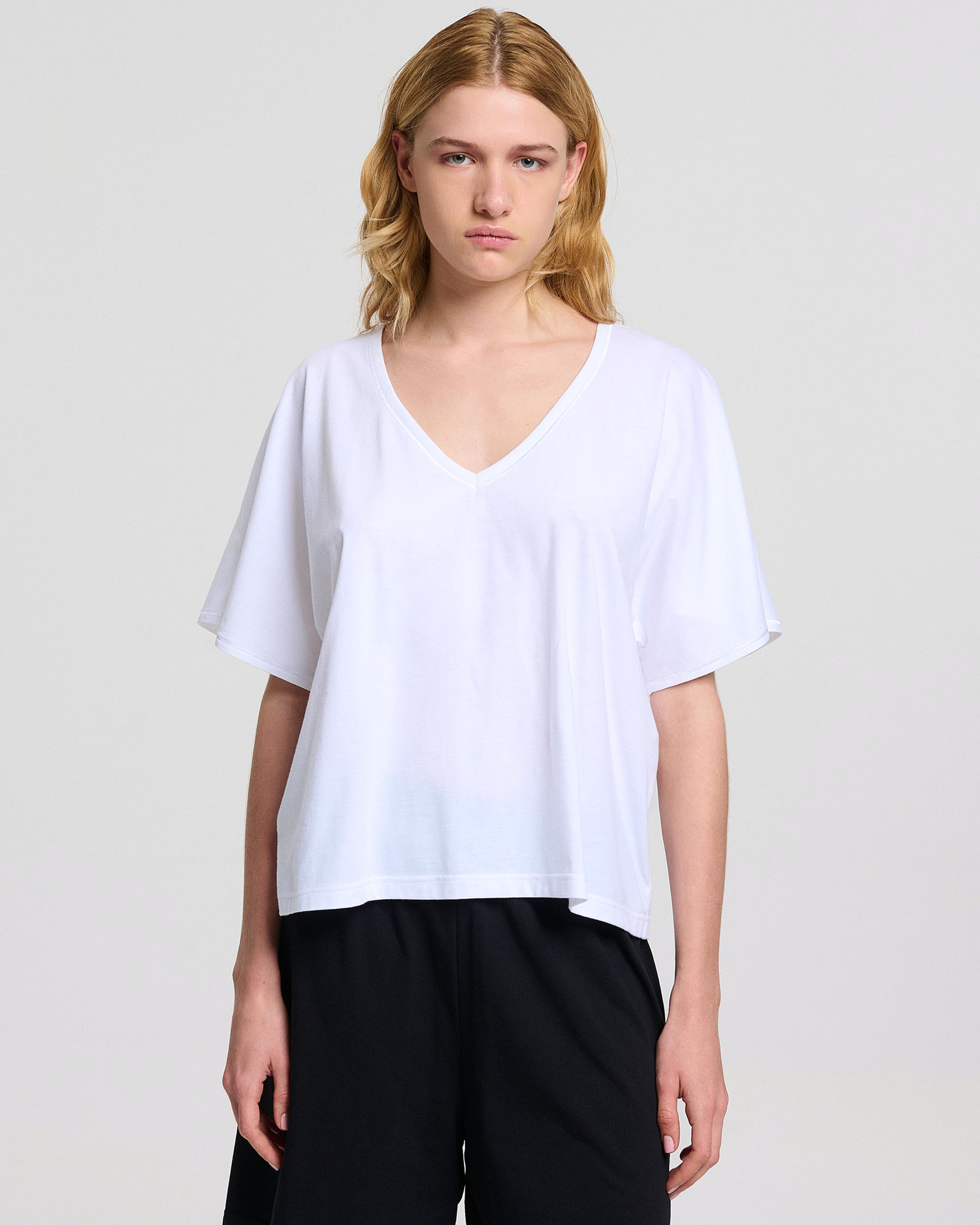 Κοντομάνικη φαρδιά βαμβακερή μπλούζα με V και japonais μανικίκια. Κατασκευάζεται στην Ελλάδα.