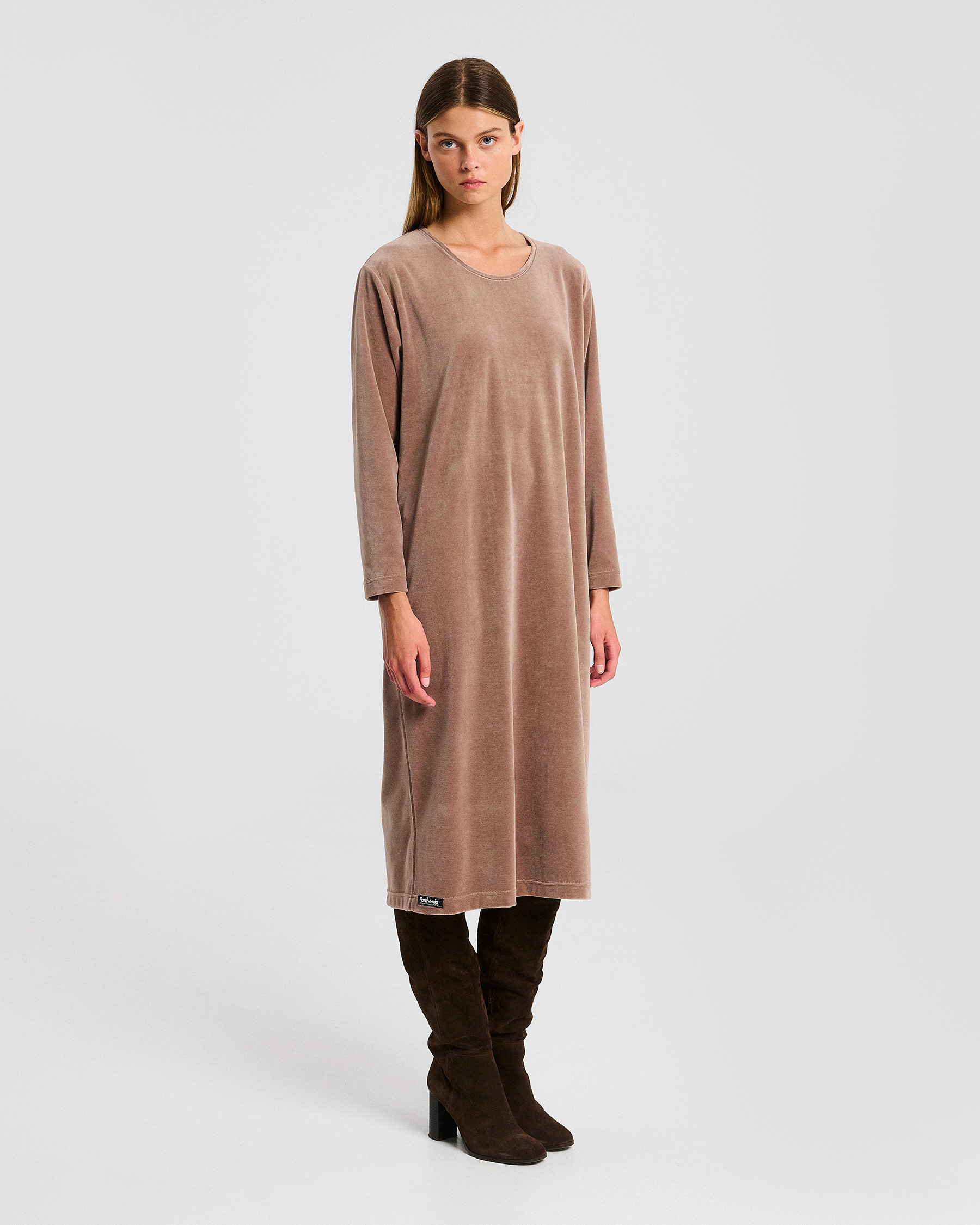 Μακρυμάνικο φαρδύ βελούδινο μίντι φόρεμα. Κατασκευάζεται στην Ελλάδα.