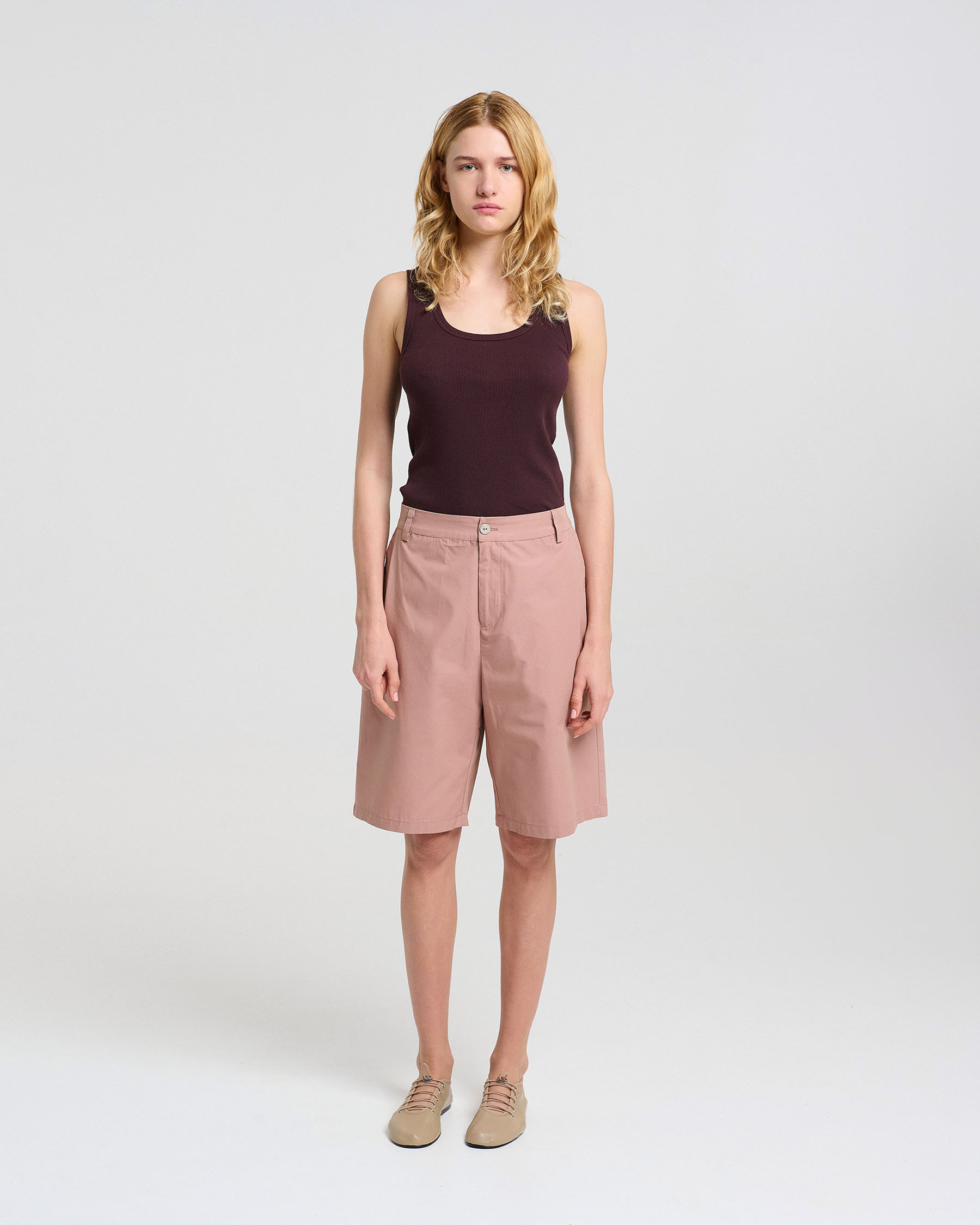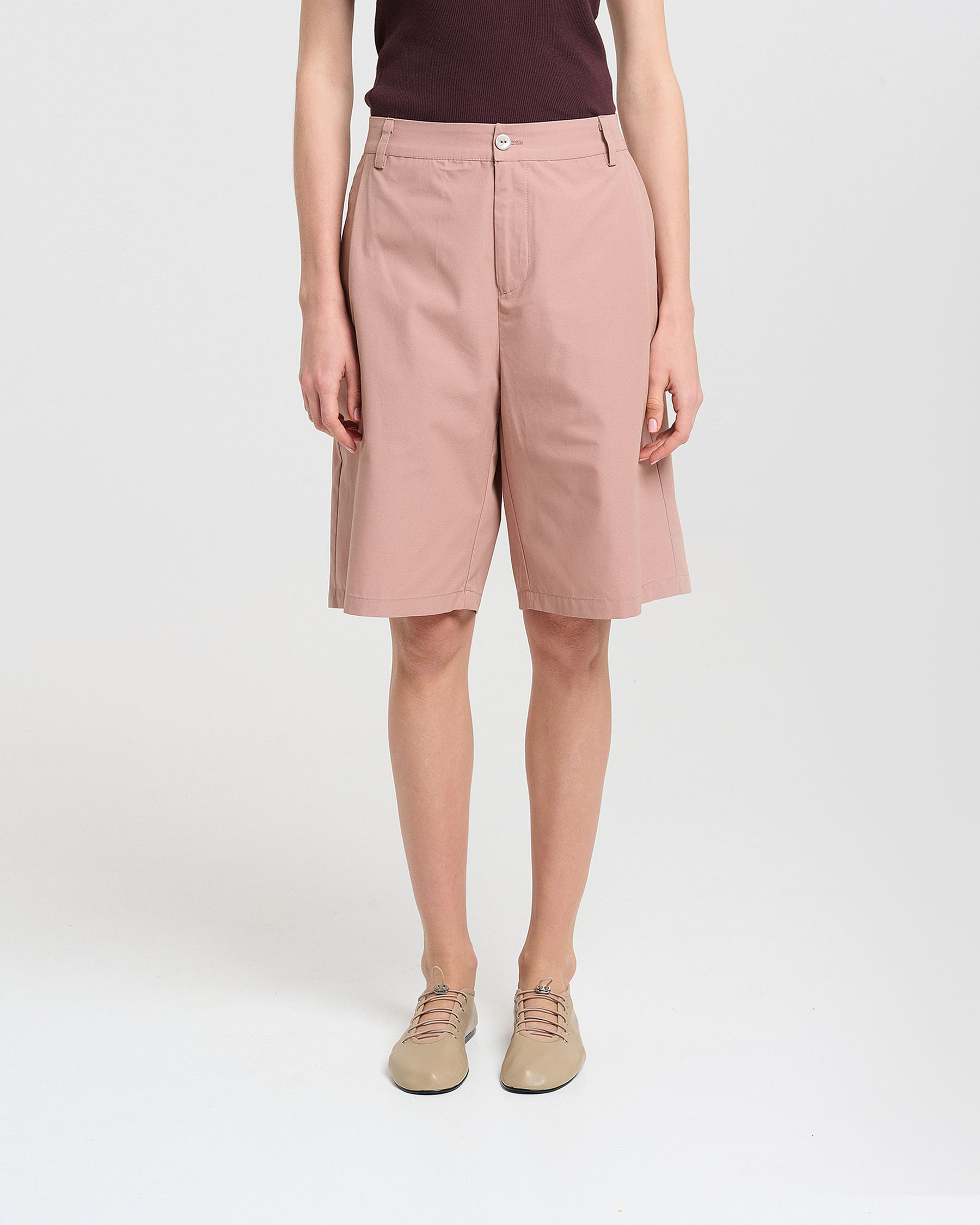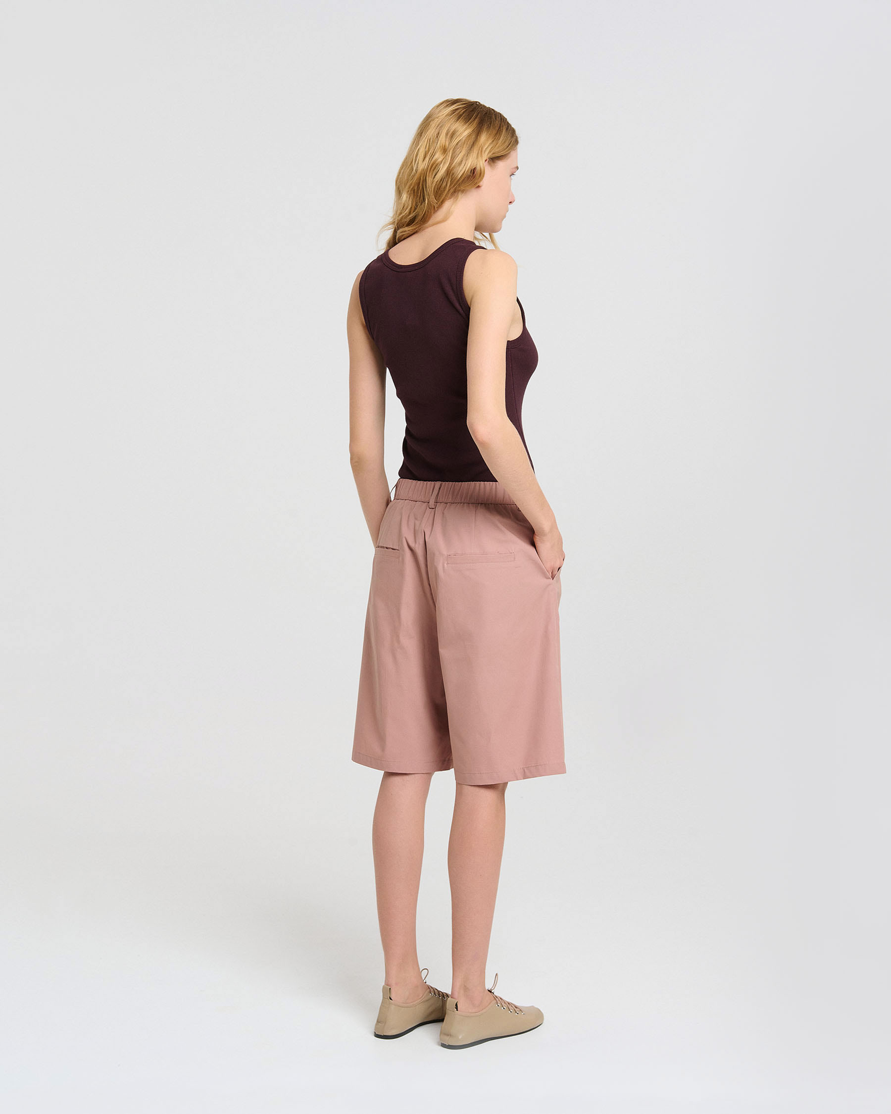 Βερμούδα σε οργανικό βαμβάκι με τσέπες πλάι και πίσω, λάστιχο πίσω και φερμουάρ μπροστά. Κατασκευάζεται στην Ελλάδα.