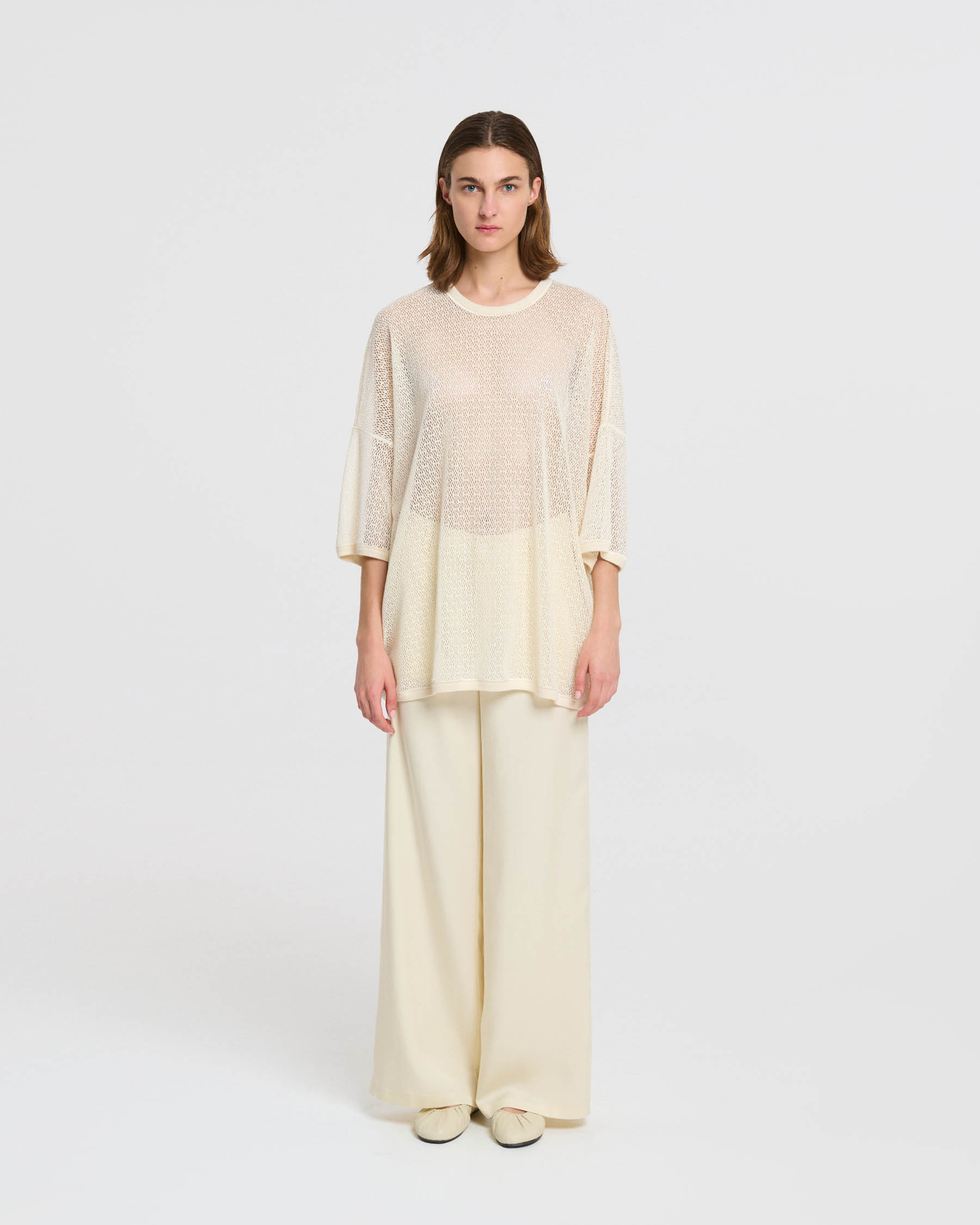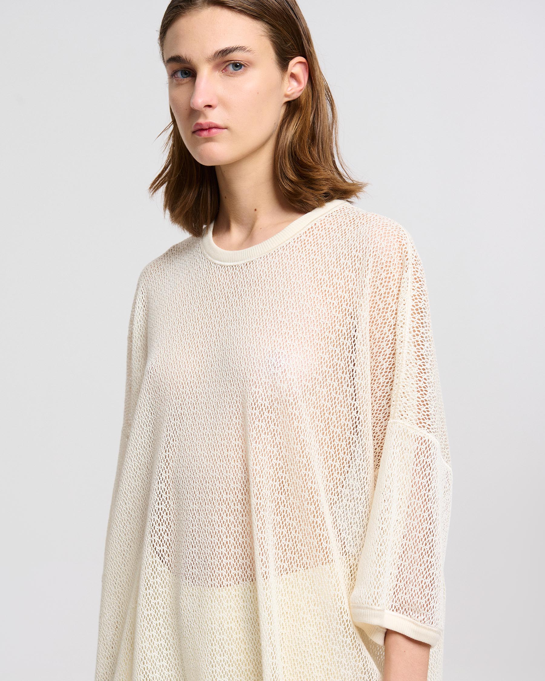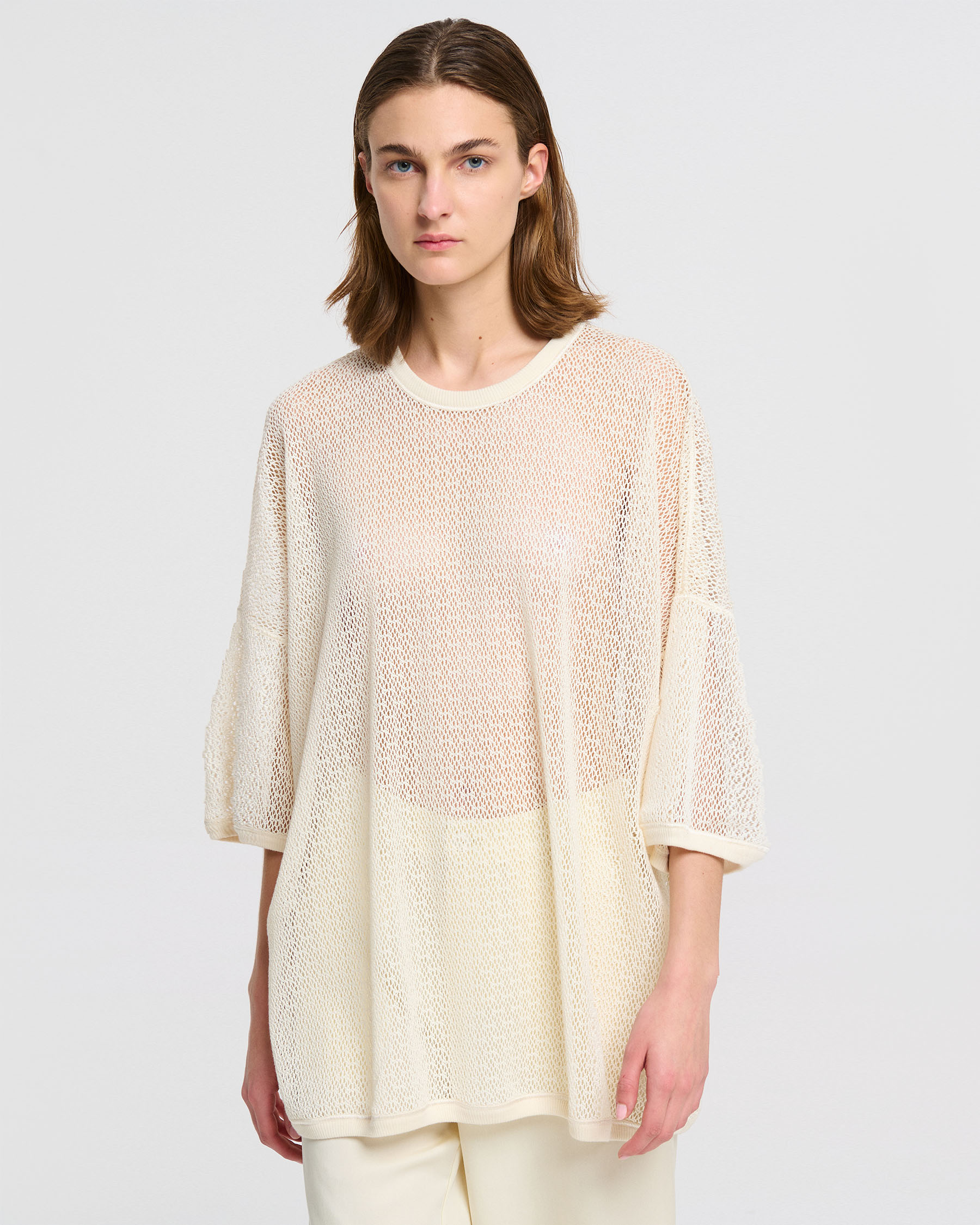 Φαρδιά μπλούζα λαιμόκοψη με 3/4 μανίκια σε βαμβακερή δαντέλα δίχτυ. Κατασκευάζεται στην Ελλάδα.