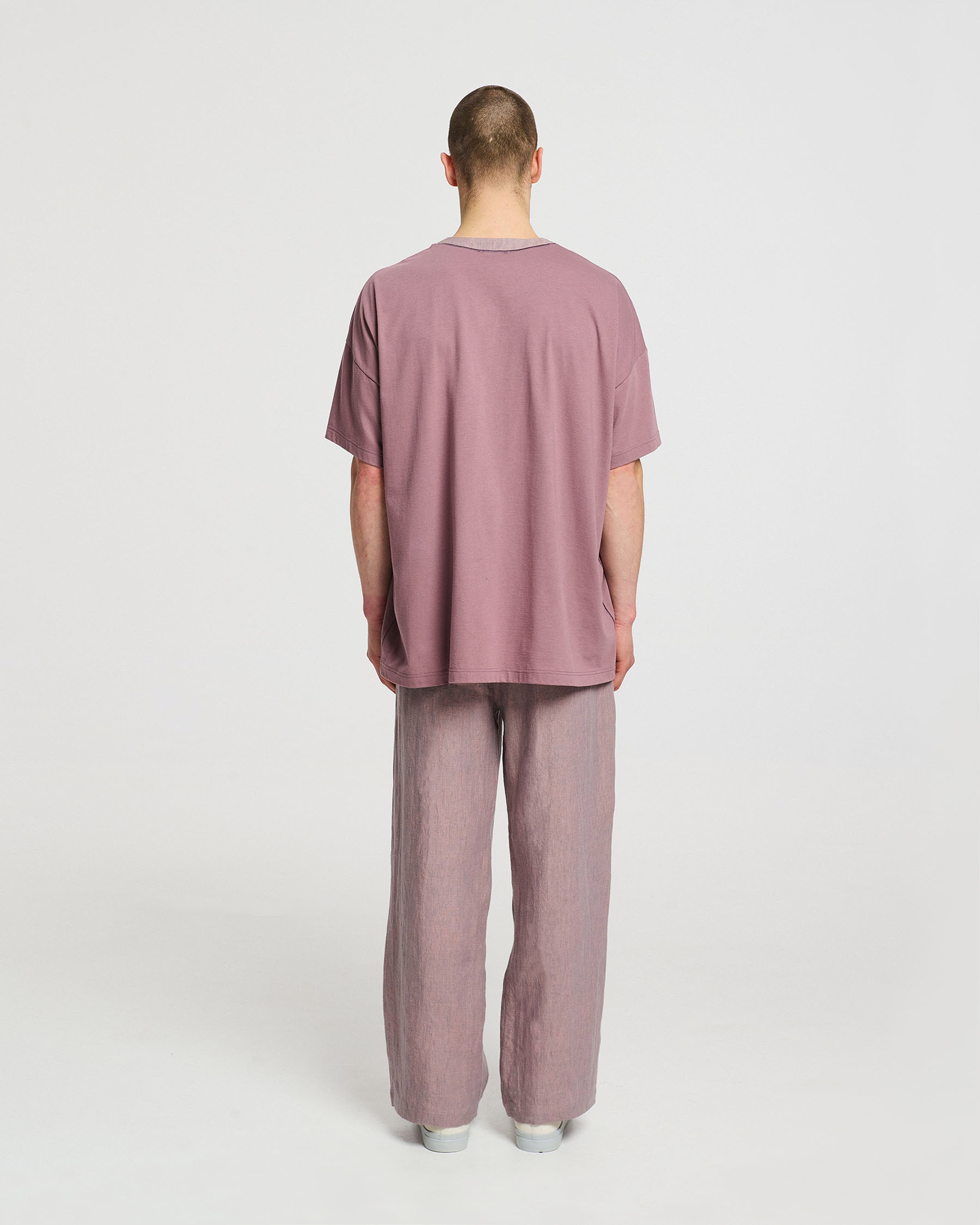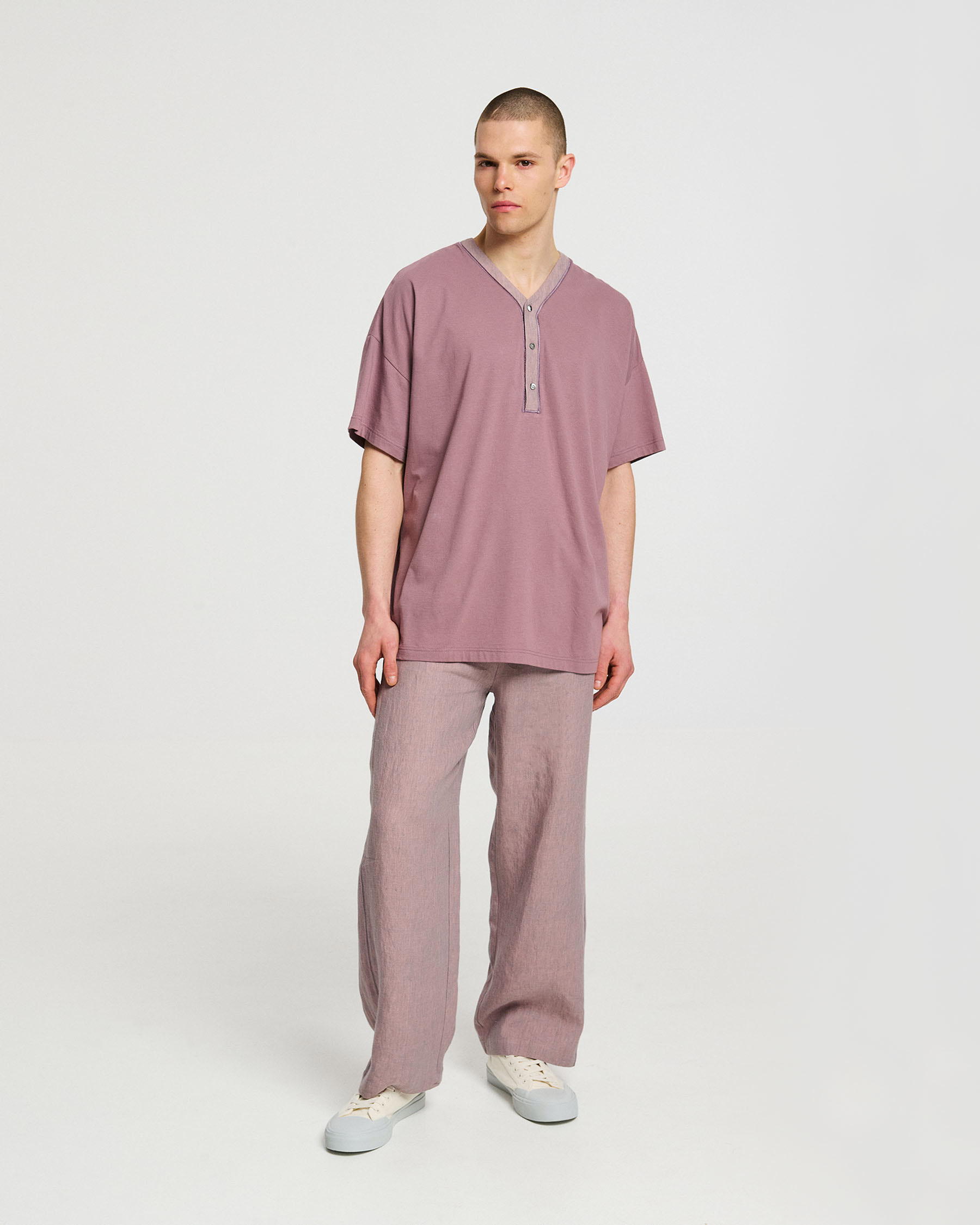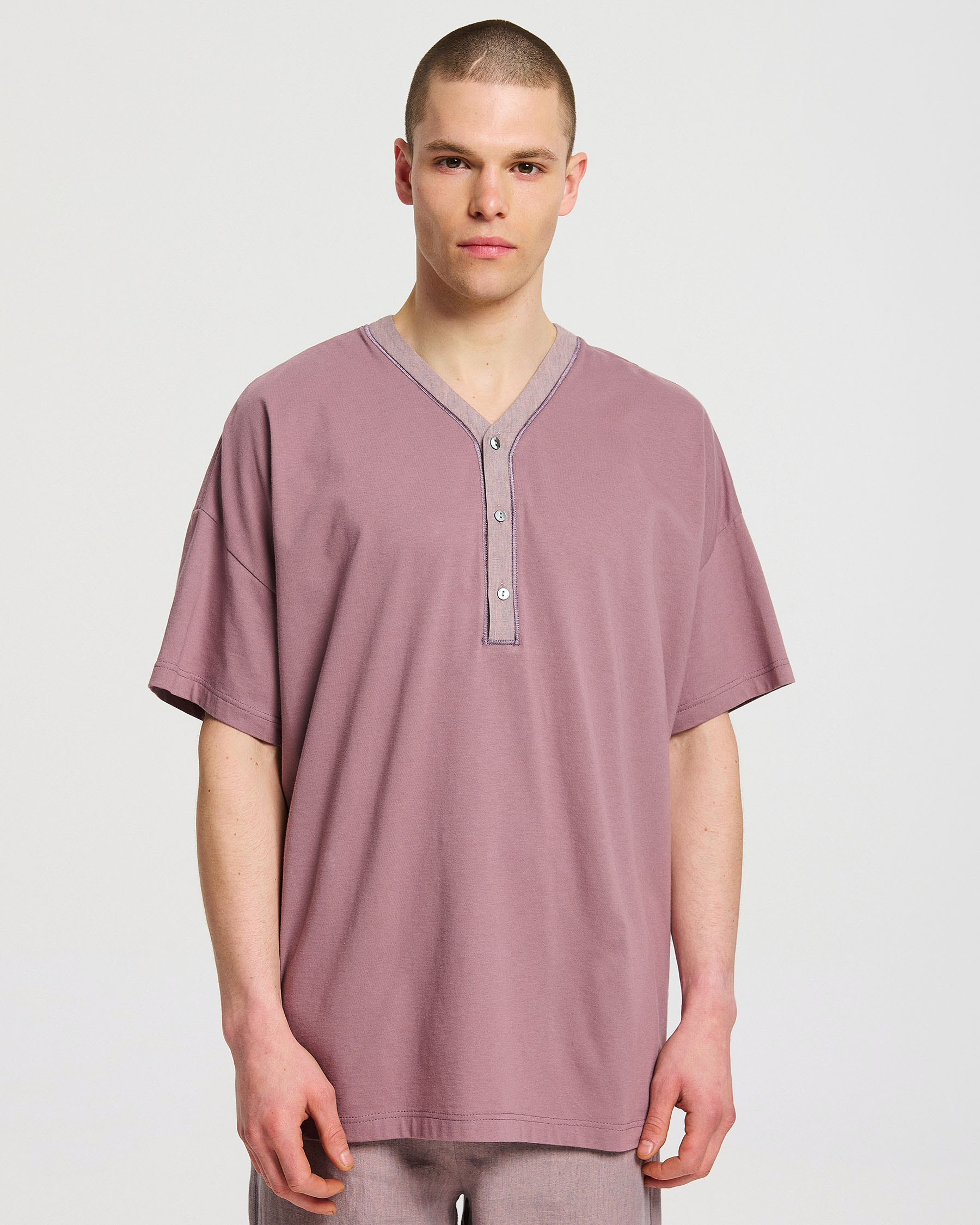 Πολύ φαρδιά κοντομάνικη βαμβακερή μπλούζα με V και λινή πατιλέτα. Κατασκευάζεται στην Ελλάδα.