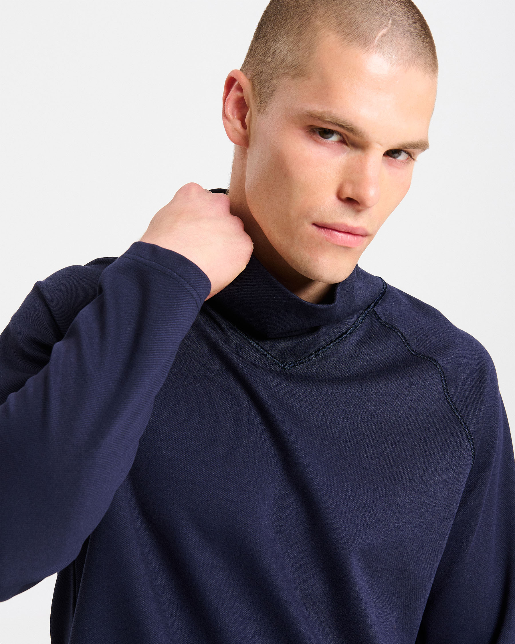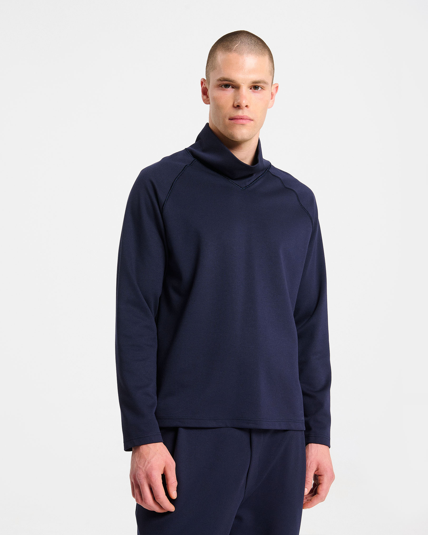 Μπλούζα σε Punto di Roma με ψηλό γιακά και μακριά μανίκια ρέγκλαν. Κατασκευάζεται στην Ελλάδα.
