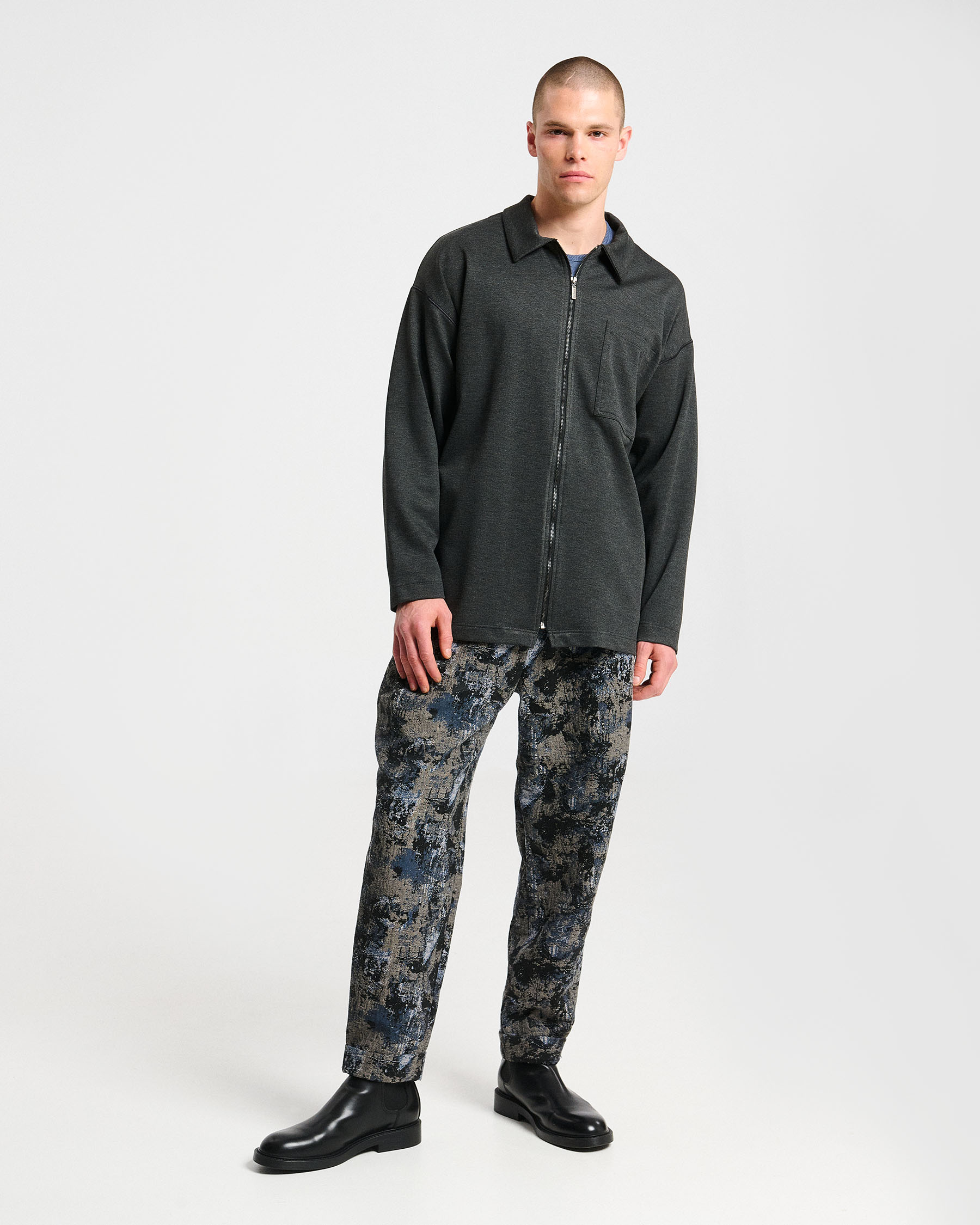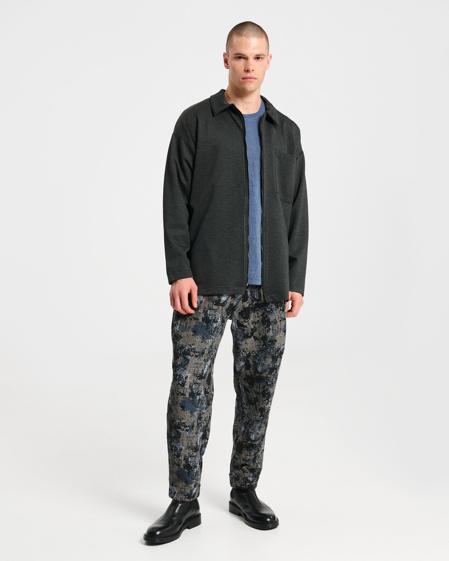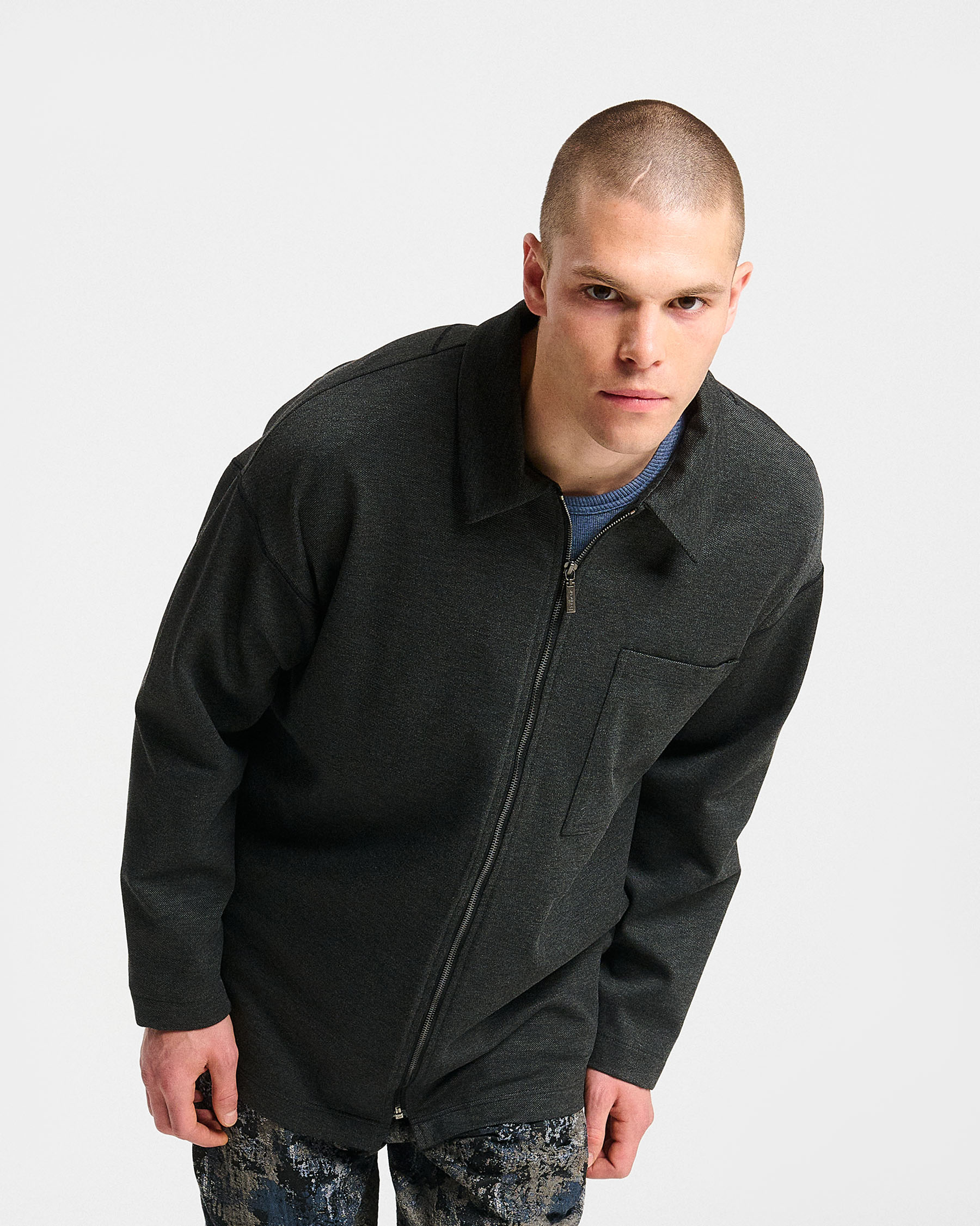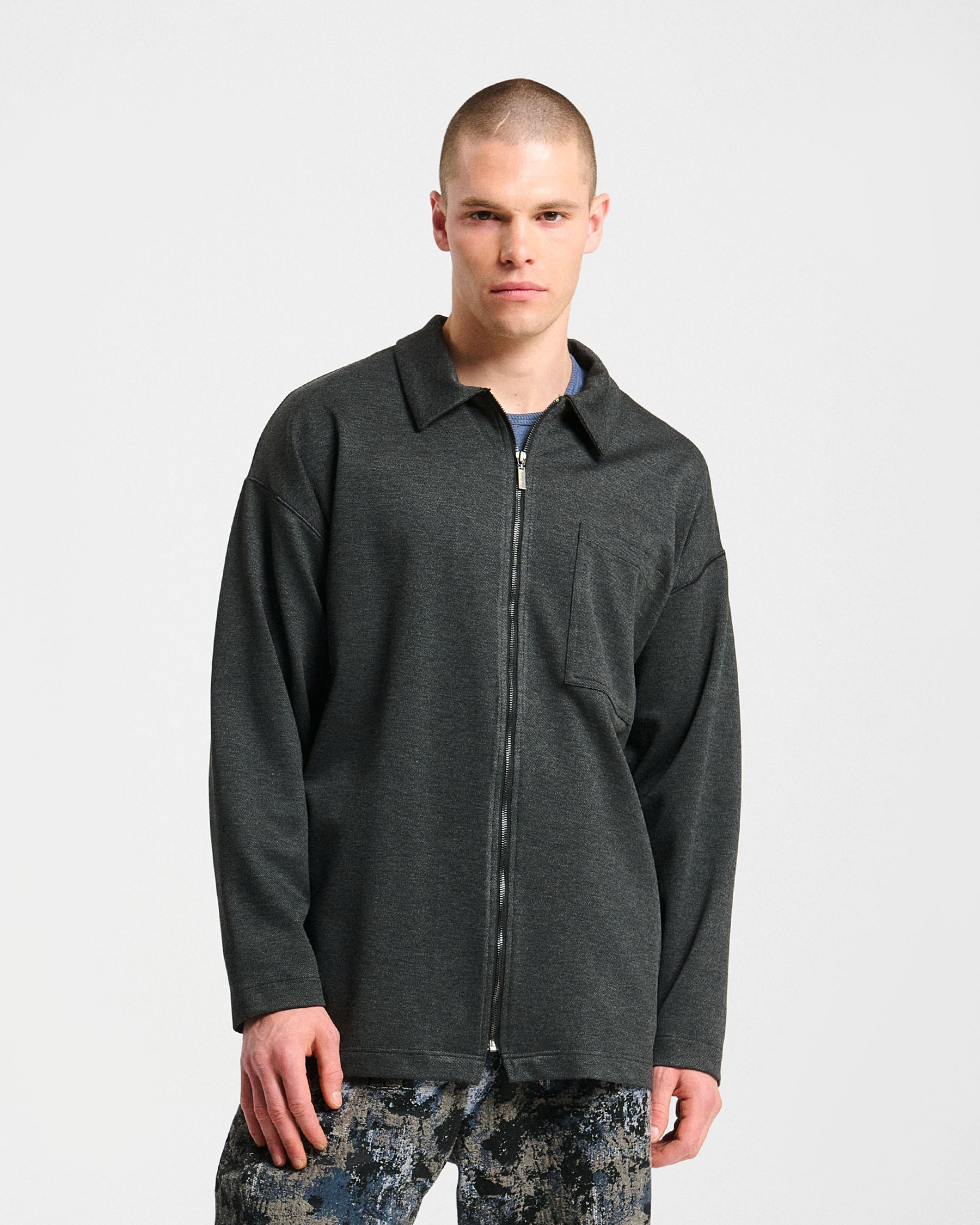 Μακρυμάνικη πολύ φαρδιά ζακέτα σε Punto di Roma με φερμουάρ, γιακά και τσέπη στο στήθος. Κατασκευάζεται στην Ελλάδα.