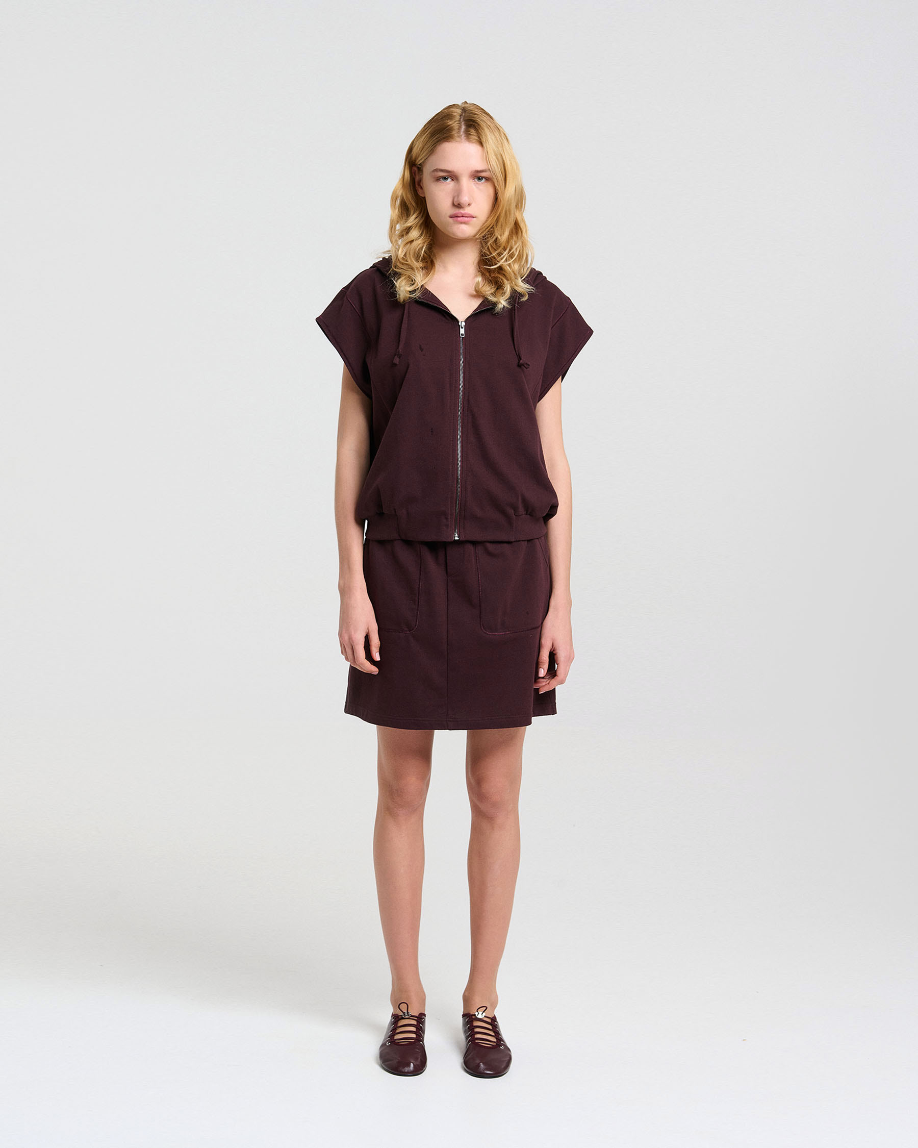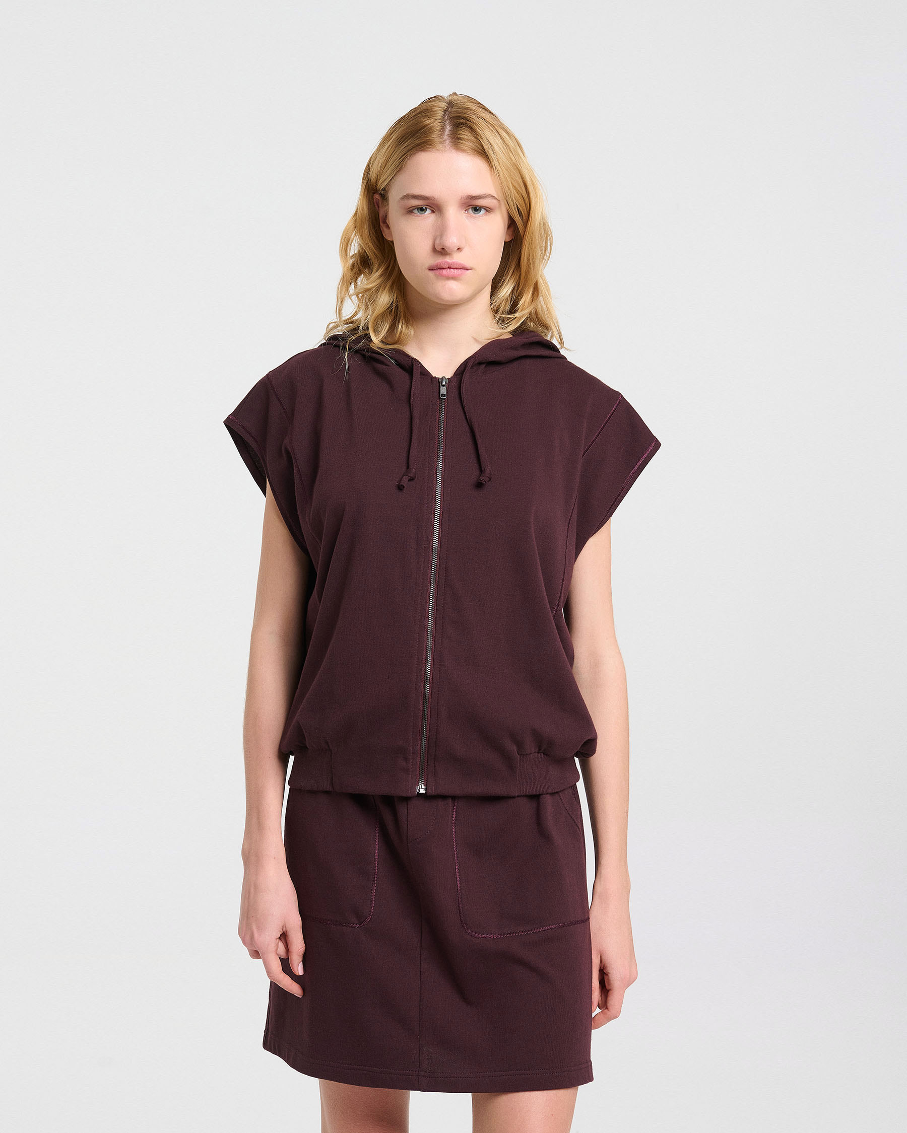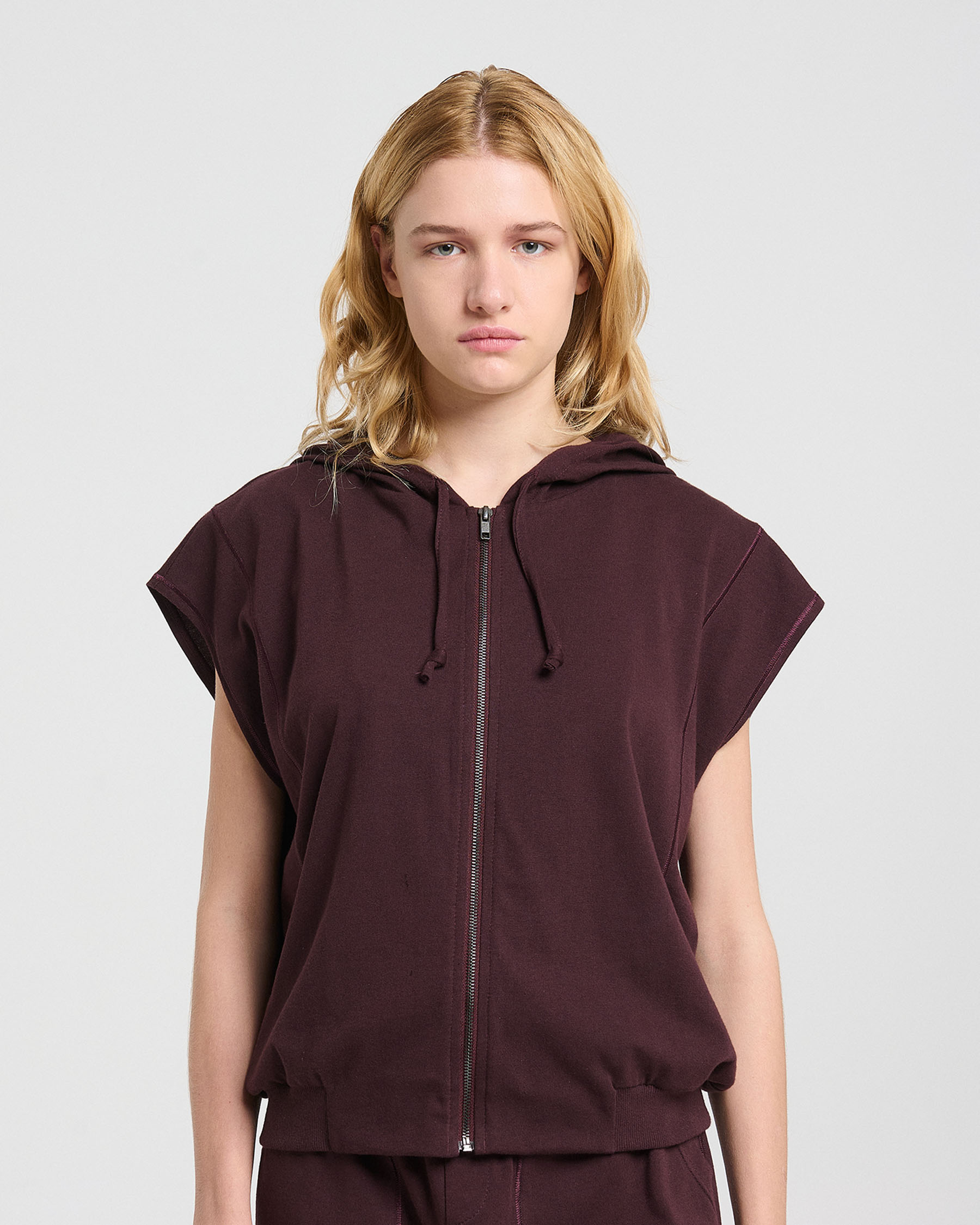 Αμάνικη κοντόφαρδη βαμβακερή ζακέτα με κουκούλα. Κατασκευάζεται στην Ελλάδα.
