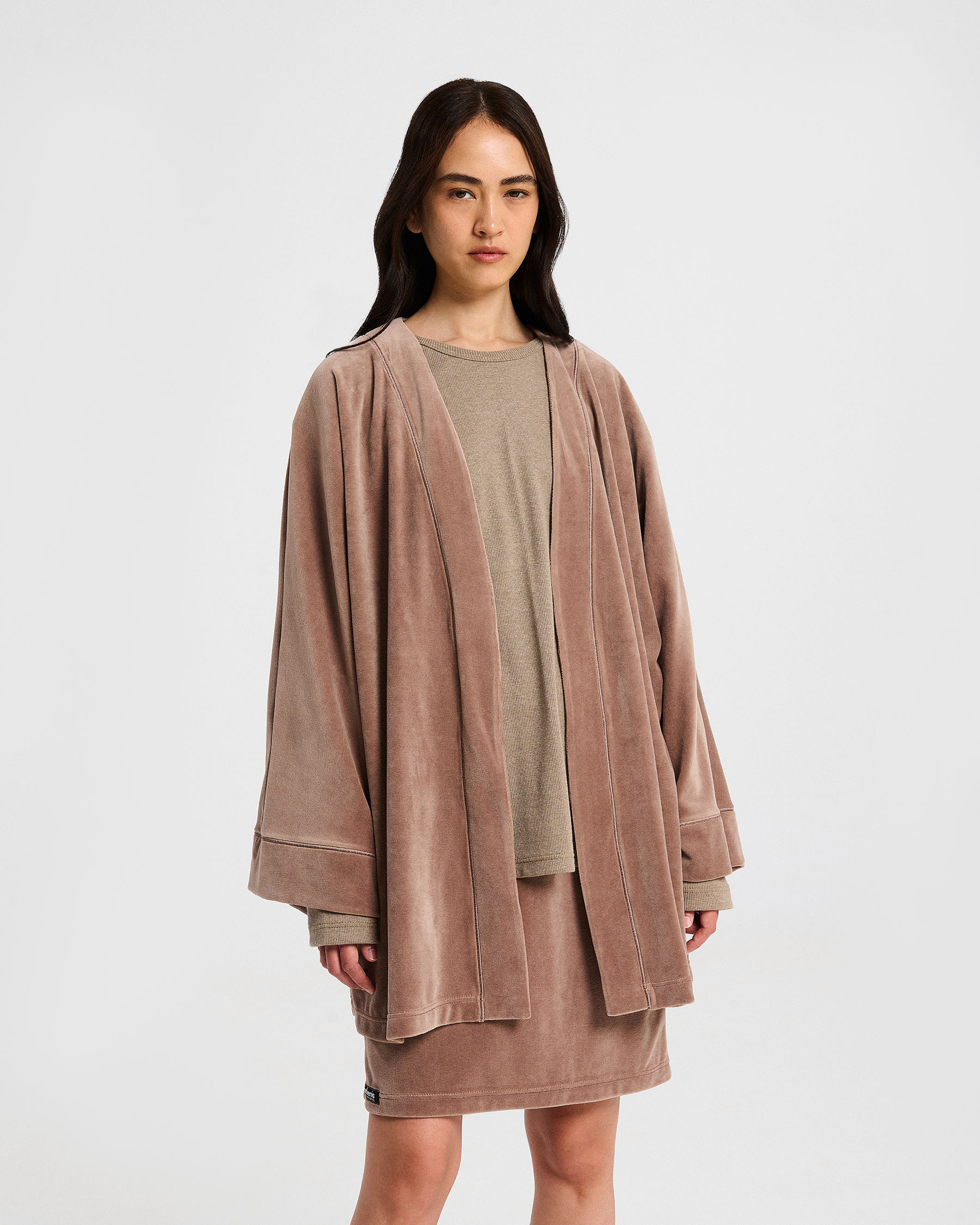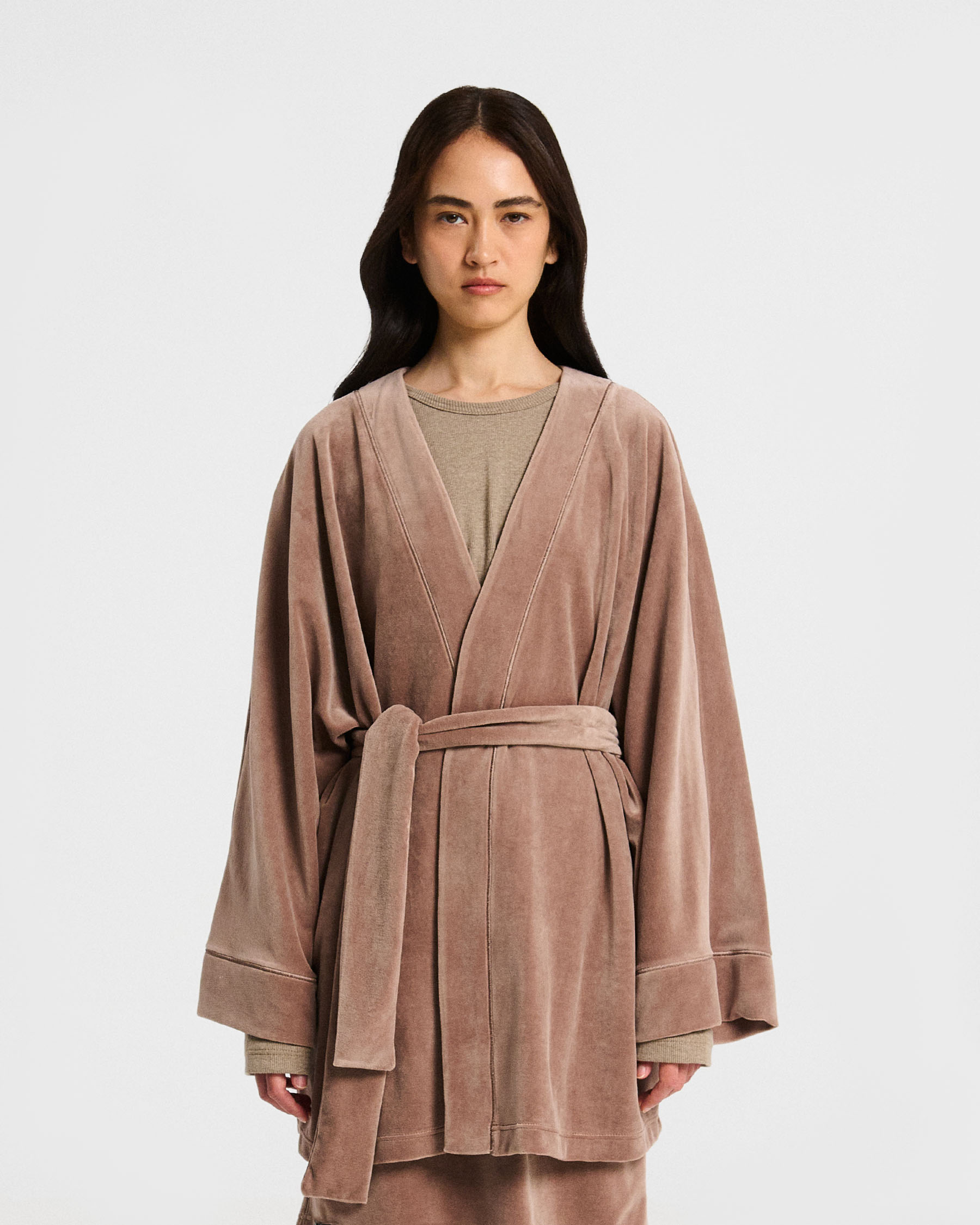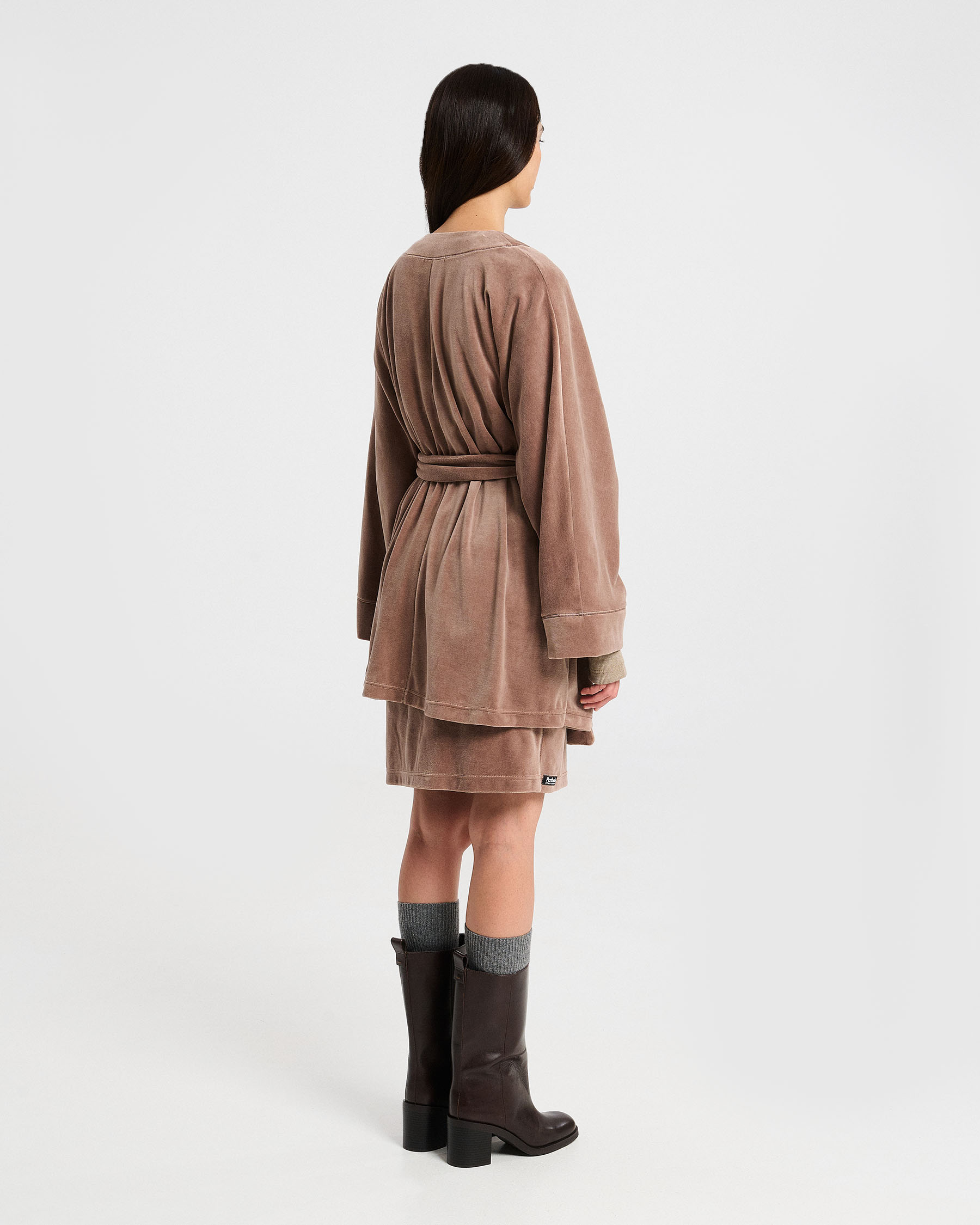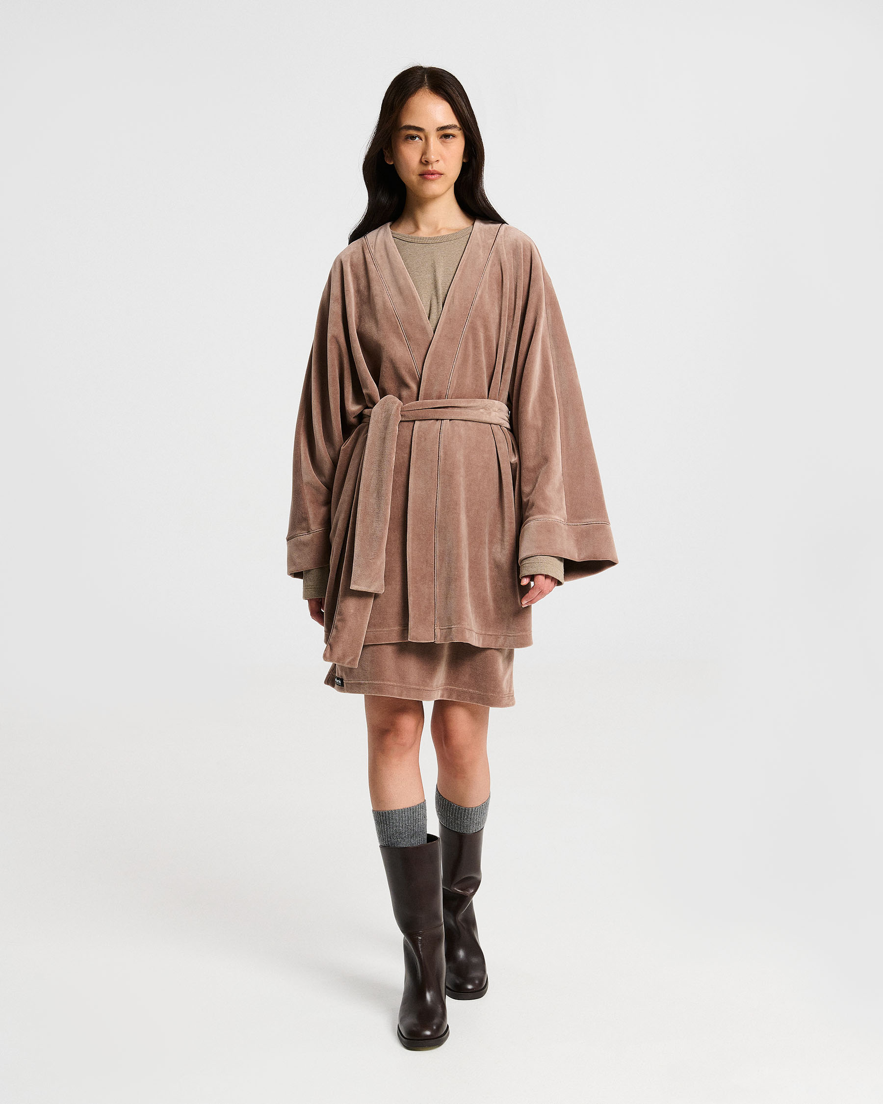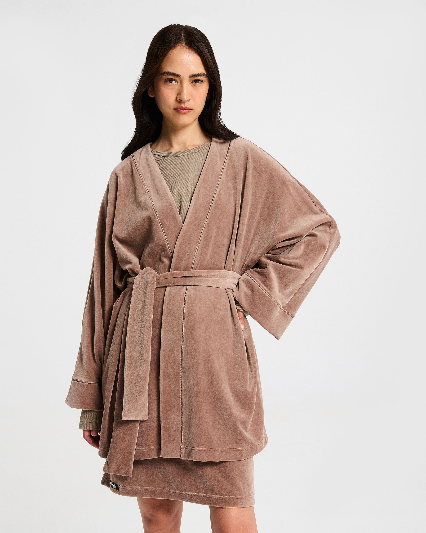 Μακρυμάνικη βελούδινη ζακέτα κιμονό με ζώνη. Κατασκευάζεται στην Ελλάδα.