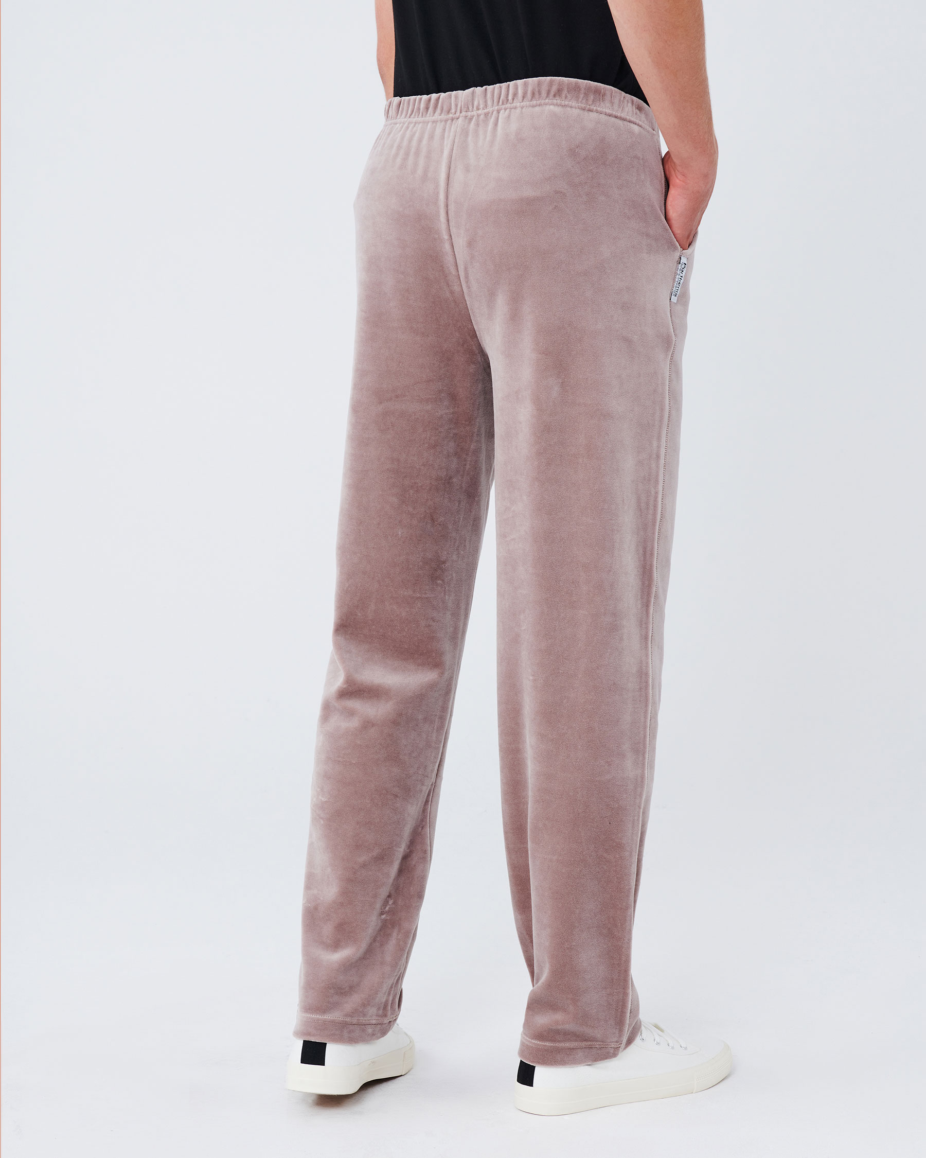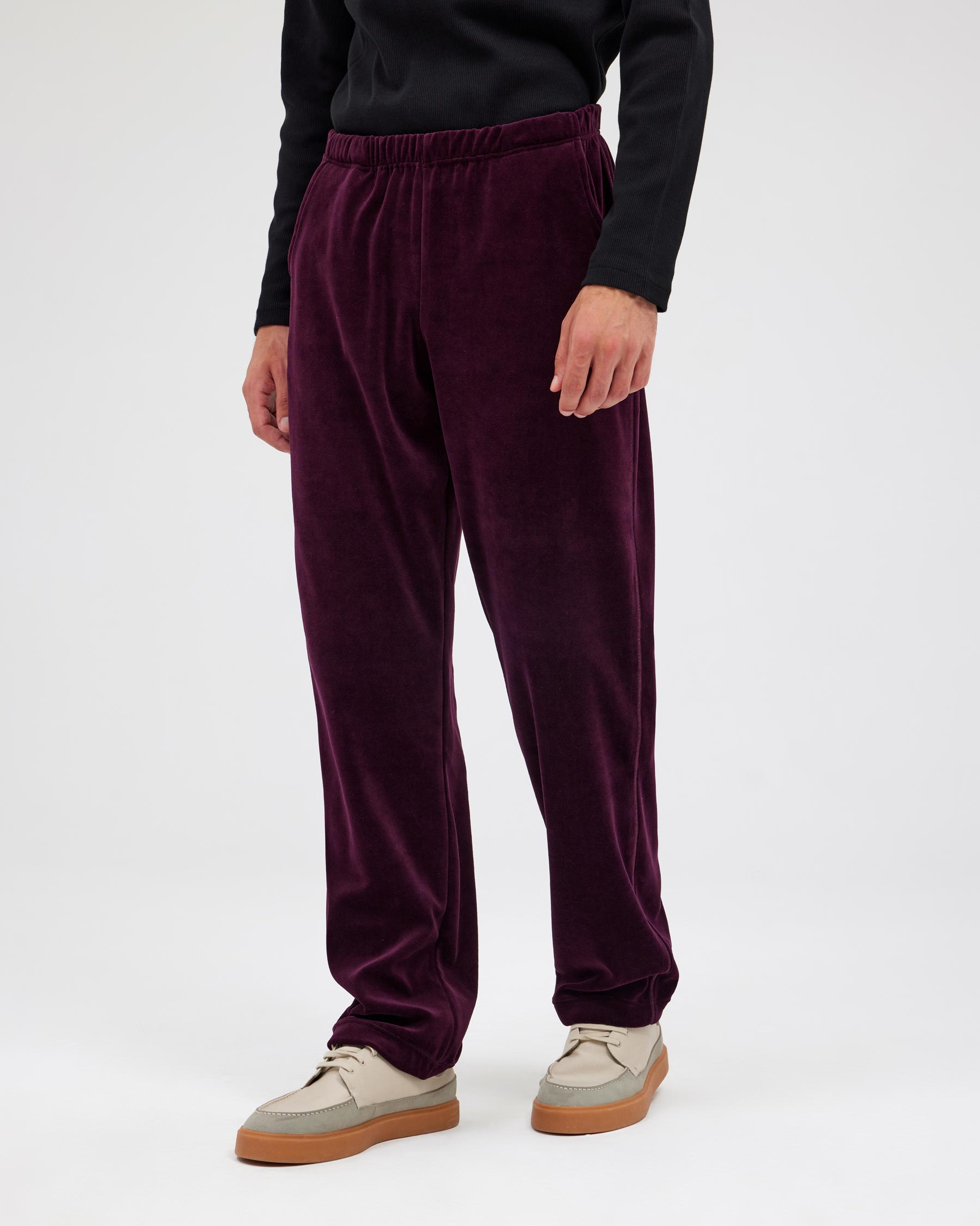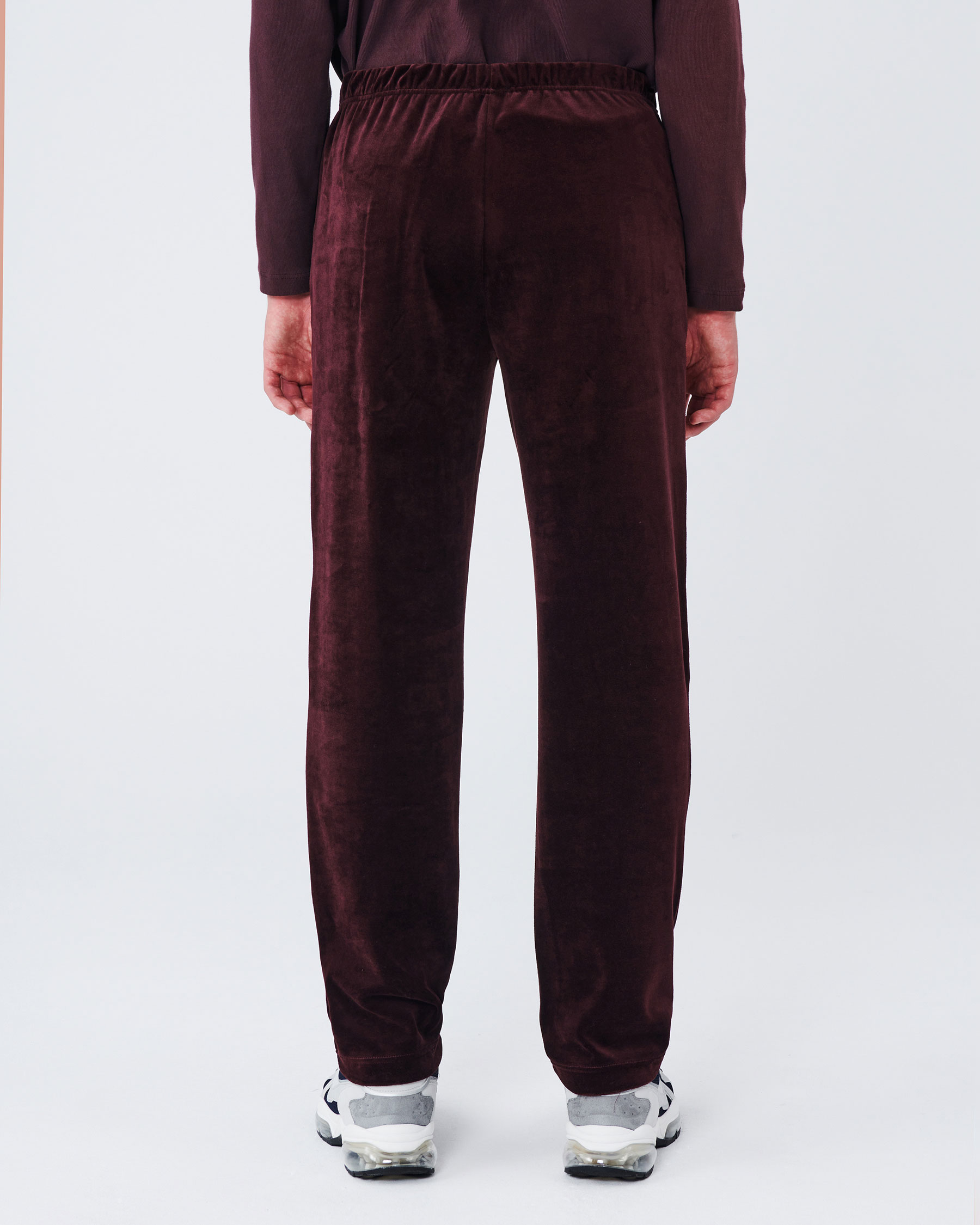 Βελούδινο παντελόνι με λάστιχο, μπατζάκι που στενεύει κάτω, τσέπες και διακοσμητικές ομοιόχρωμες ραφές. Η ετικέτα Parthenis Athens-Mykonos είναι ραμμένη εξωτερικά, στην δεξιά πλευρά της πλαϊνής ραφής. Κατασκευάζεται στην Ελλάδα.